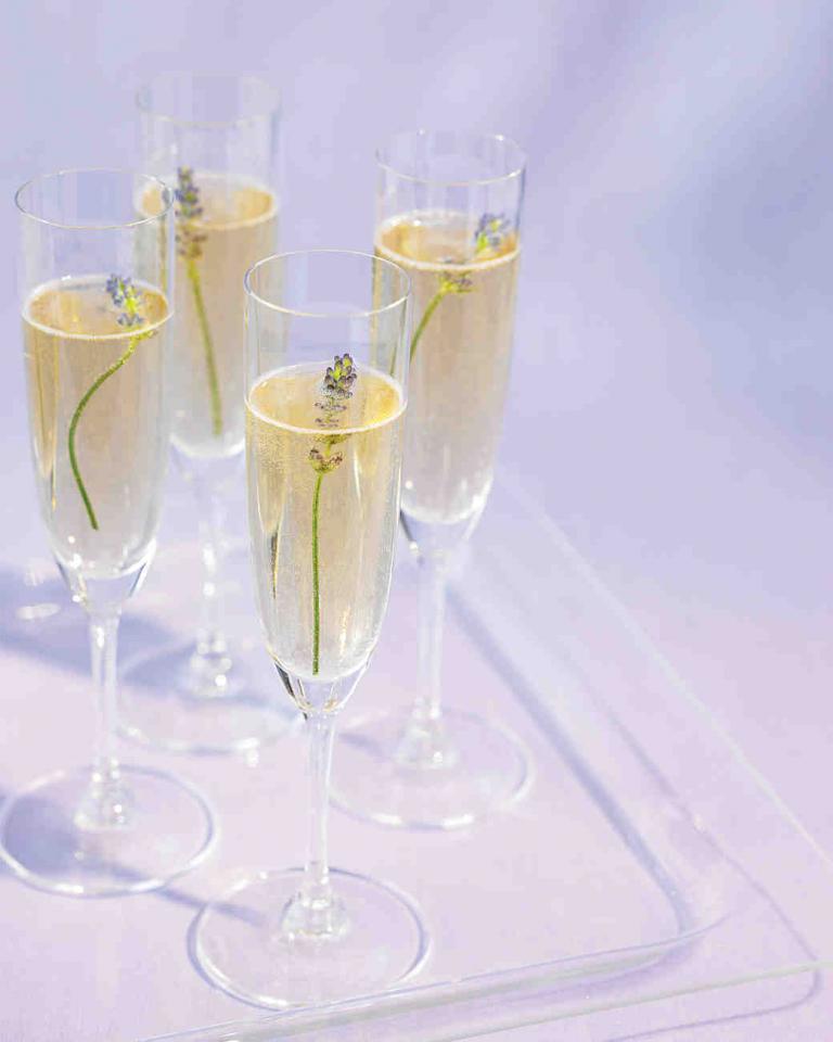 Whether you’re saying “I do” in Provence or the Côte d’Azur, a lavender infused champagne is a very French way to welcome your guests. Garnishing with a sprig of the flower is a must—because it’s oh so elegant and fragrant enough (without being overpowering!).