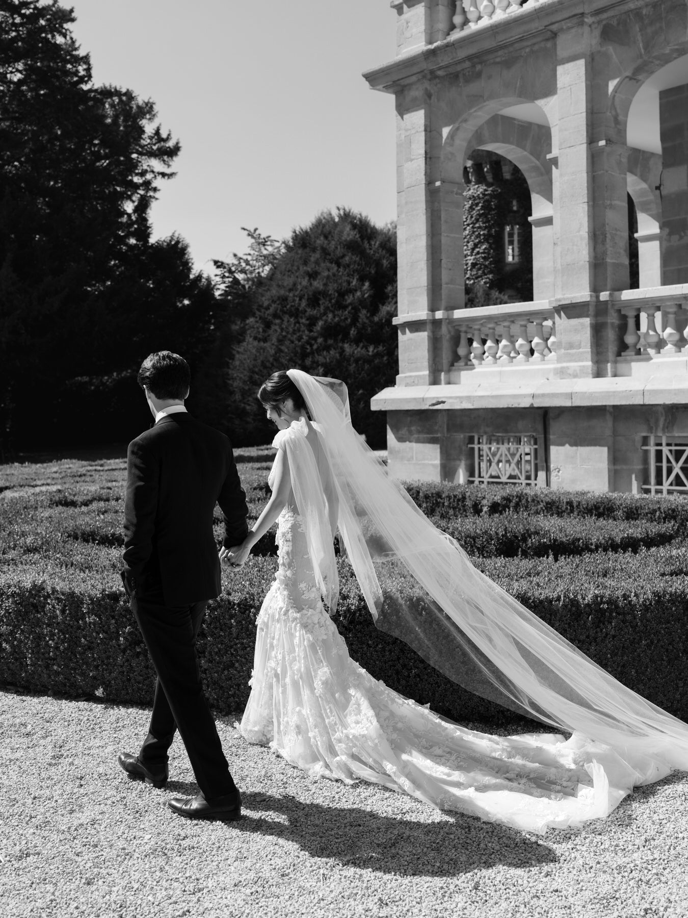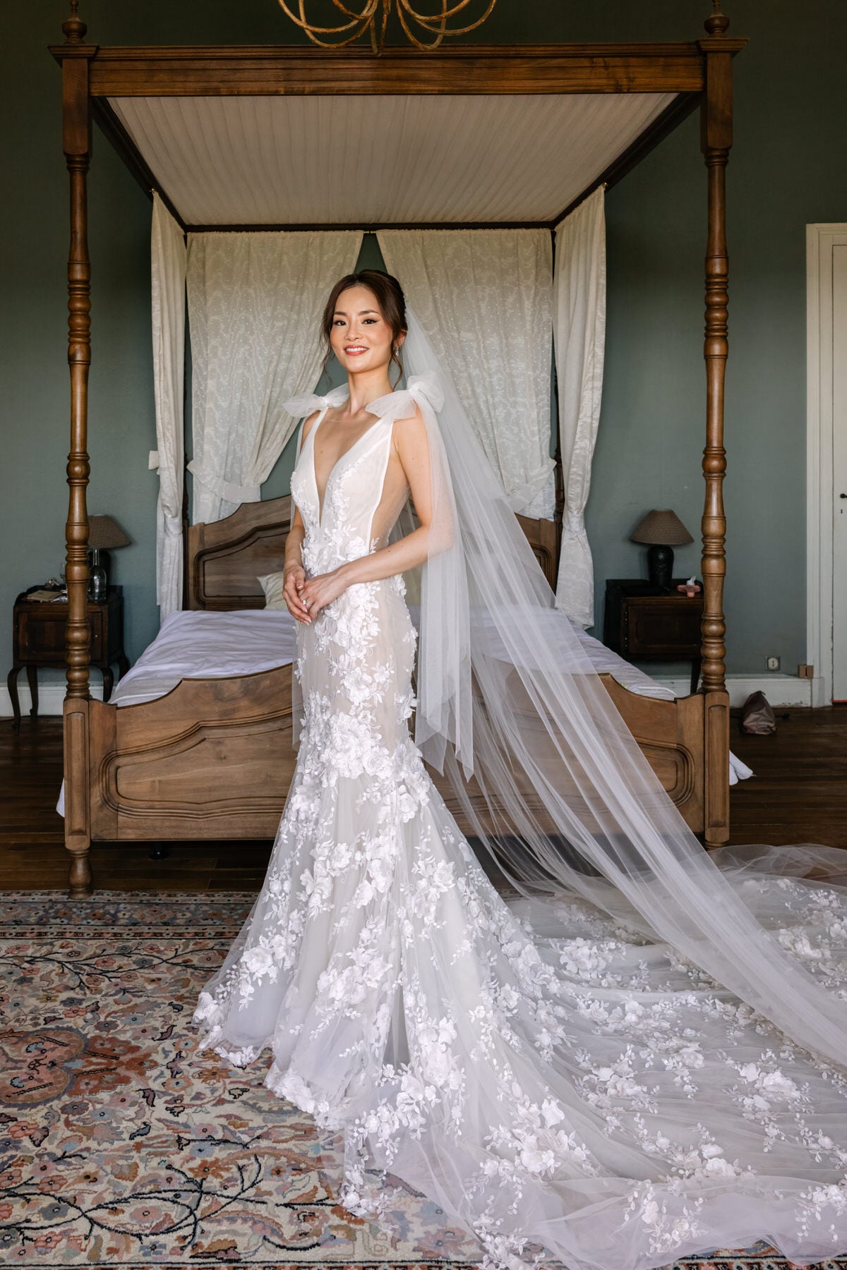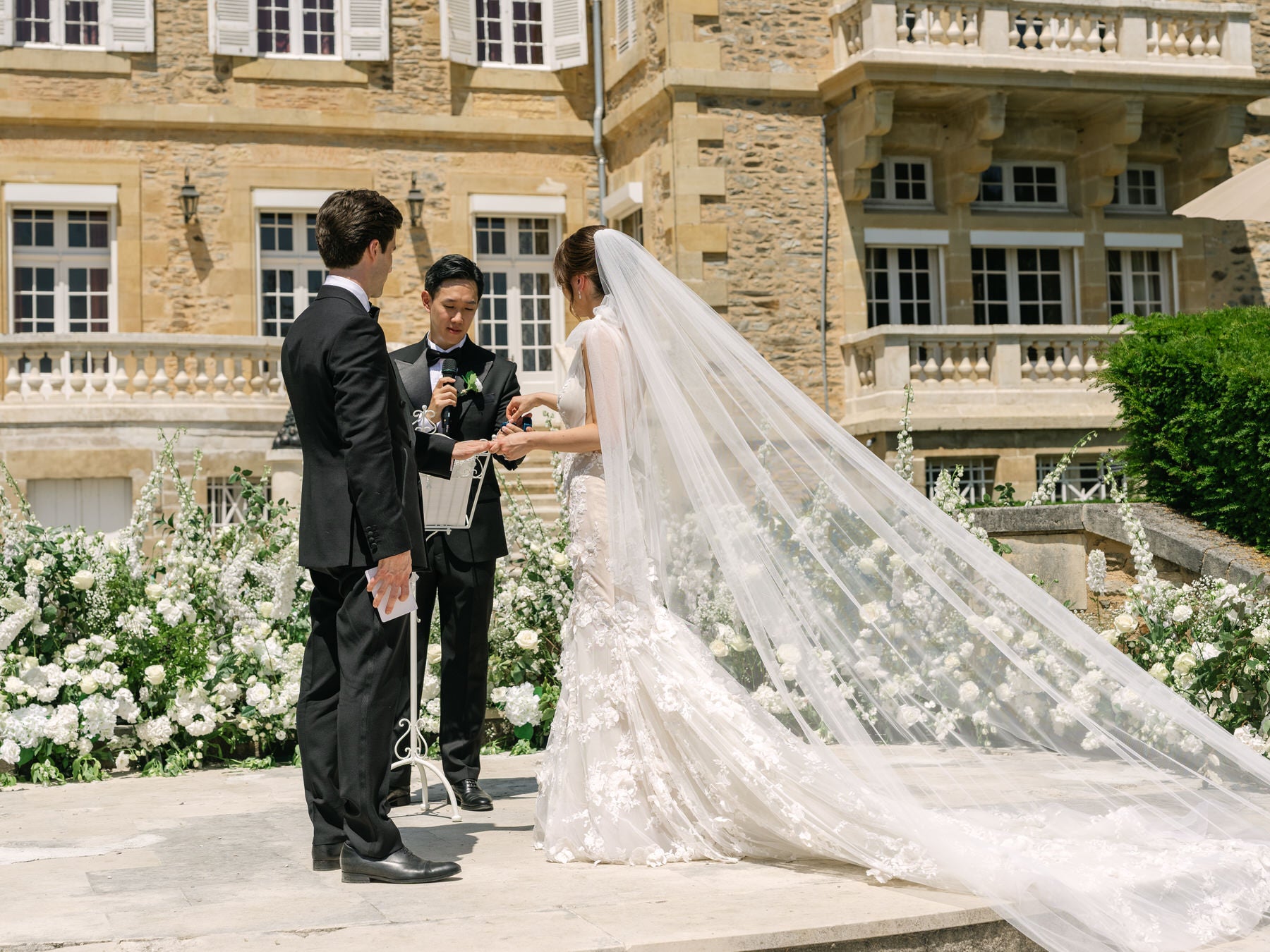 Set in a hidden French countryside château, the wedding felt intimate, warm, and deeply personal. The venue, owned by a family and untouched by social media trends, became a true home for the celebration. With acres of land and space for loved ones to stay on-site, the days leading up to the wedding were filled with long dinners, peaceful mornings, and meaningful time together with family who had traveled from around the world. That togetherness, rare and fleeting, became one of the most treasured parts of the experience. The ceremony itself was especially meaningful, with handwritten vows and a surprise smoke flare moment that brought energy and emotion to the celebration.