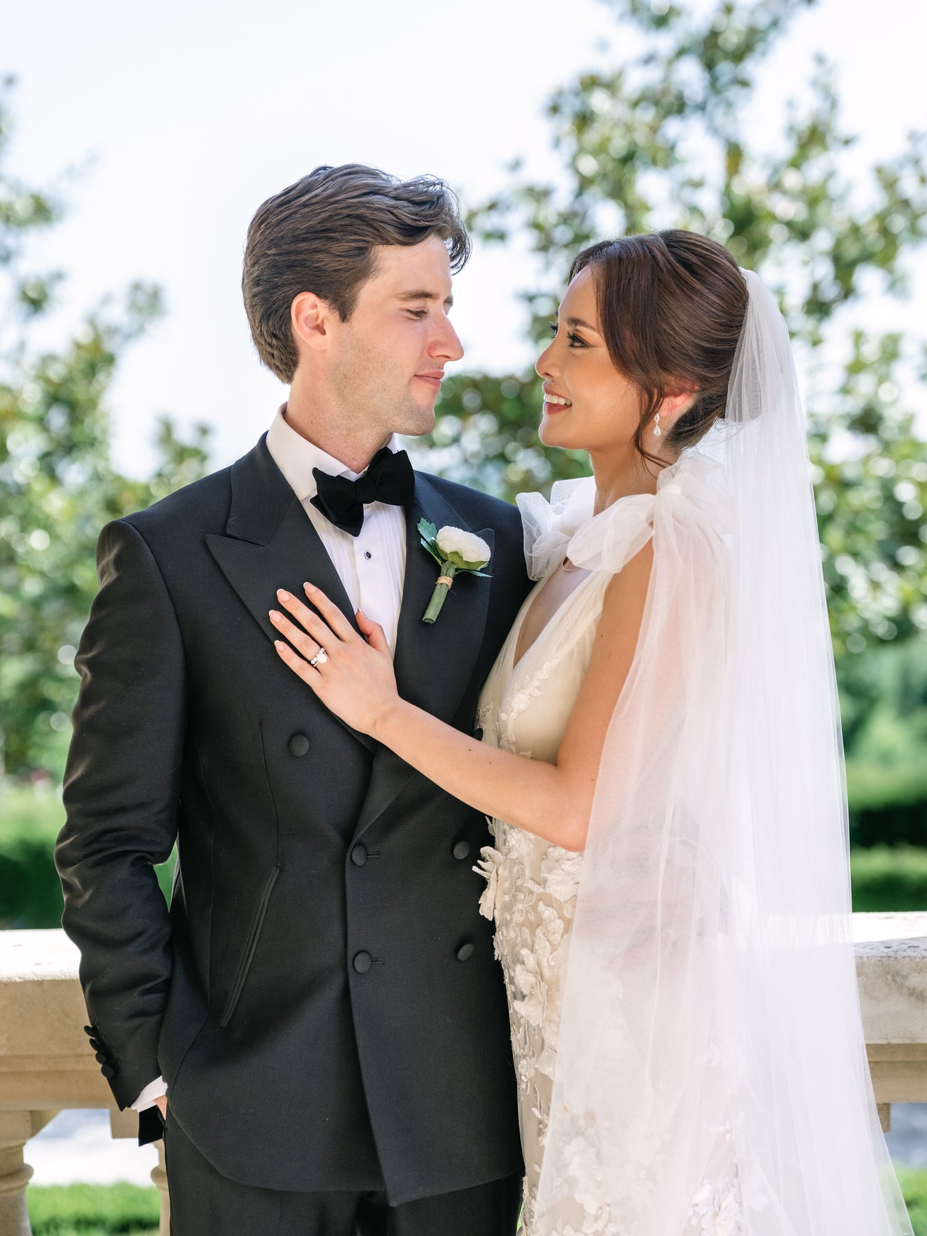 Finding the dress was a journey of its own. After trying on more than 100 gowns in search of something timeless, elegant, and uniquely her, she knew instantly when she stepped into her Galia Lahav design. The floral appliqué, delicate lacework, and dramatic train captured the romance and sophistication she had always imagined. On the morning of the wedding, seeing herself fully dressed made everything feel real for the first time. Surrounded by emotional reactions from her mother, sister, and bridesmaids, she felt confident, grounded, and completely herself. The gown was more than beautiful, it was a reflection of how she felt stepping into this new chapter.