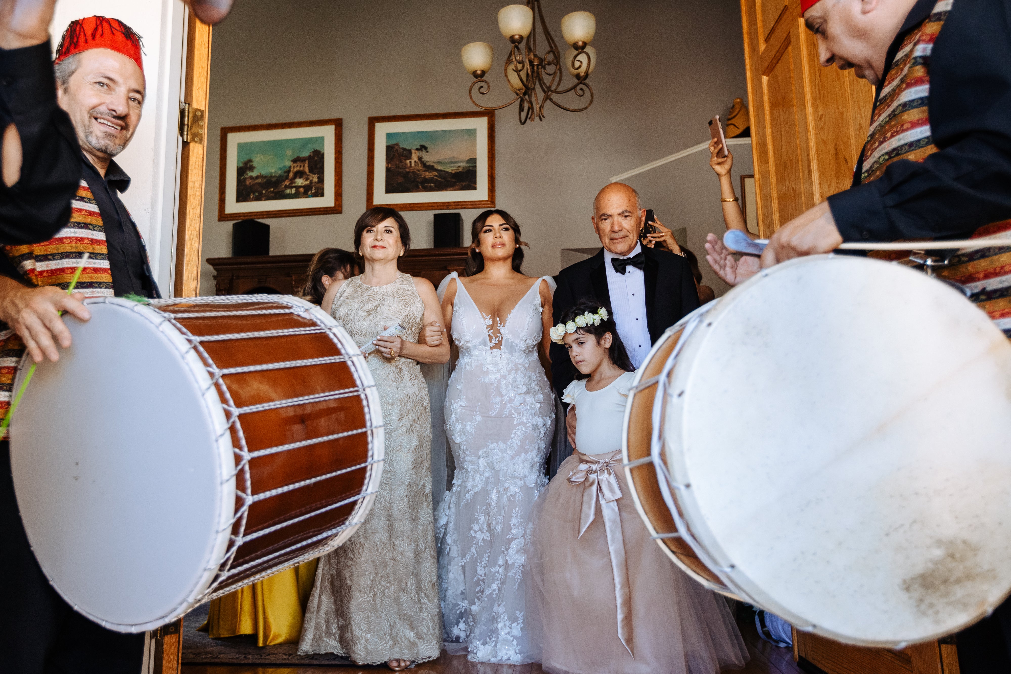 You know that moment when my bridesmaids, sisters and mom and I were all getting ready together at my mom’s house– that was so memorable and fun. We were a team, my tribe was helping me look my best. We had the music going, our hair and makeup team on deck – it was calming knowing I had a support system and we were about to do this big thing! The moment it was time to go downstairs and greet all our guests at the house before we went to the ceremony, all my girls held a piece of my veil and walked behind me down the stairs, at that moment I felt so complete – looking back and seeing them help me towards my “I Do’s” was symbolic, empowering and perfect.