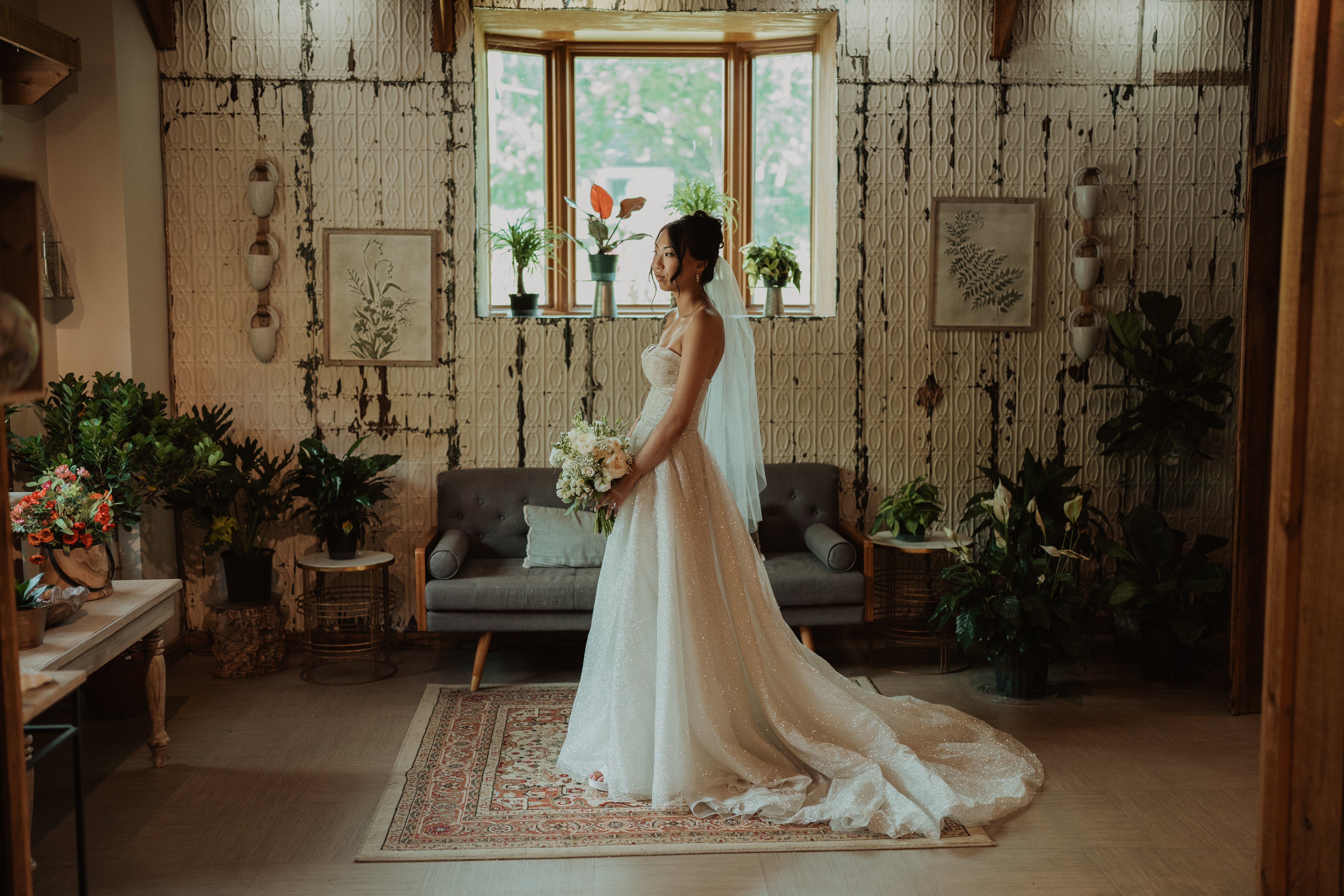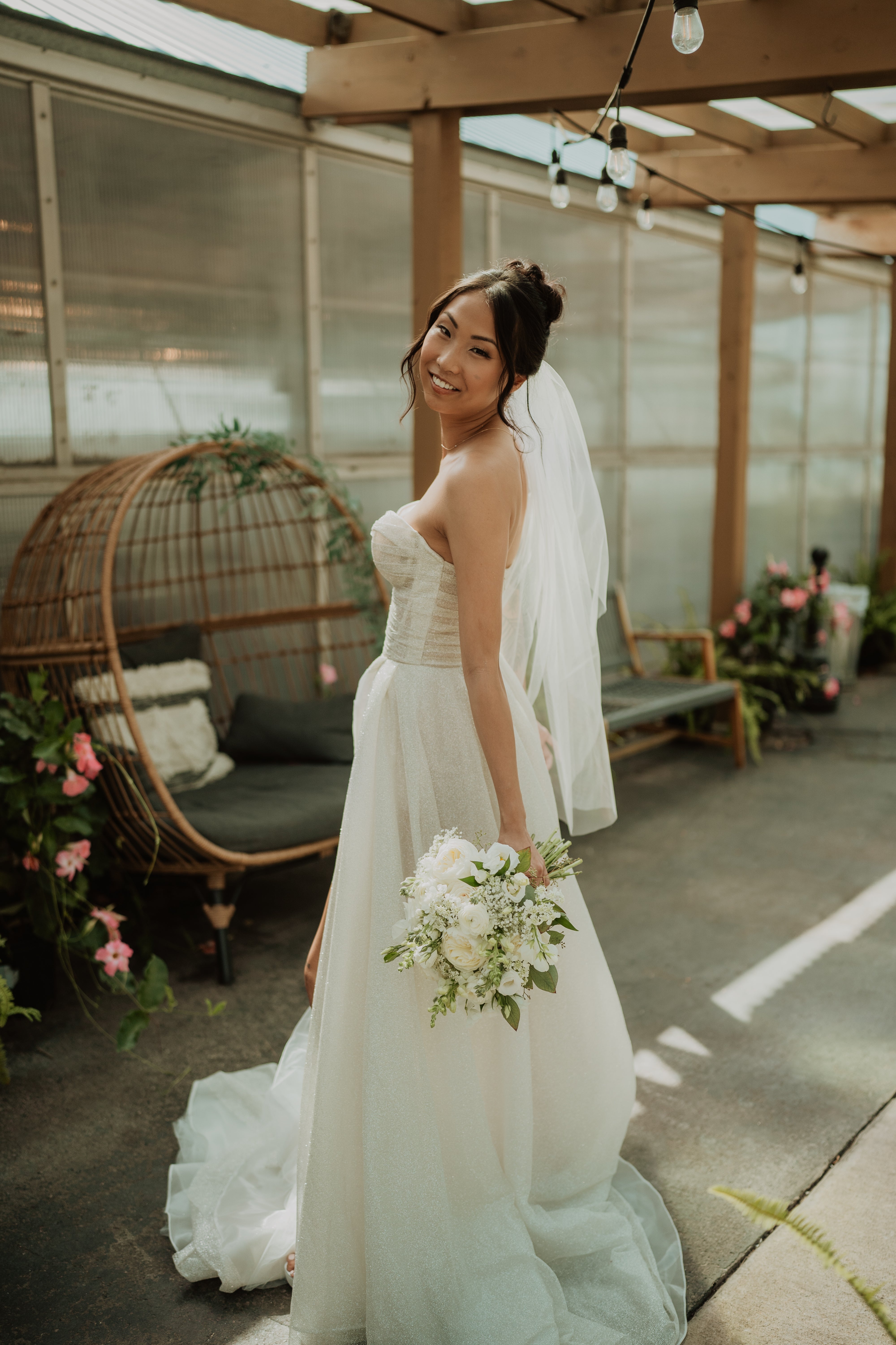 I could easily picture walking down the aisle in our greenhouse venue, surrounded by greenery and flowers.