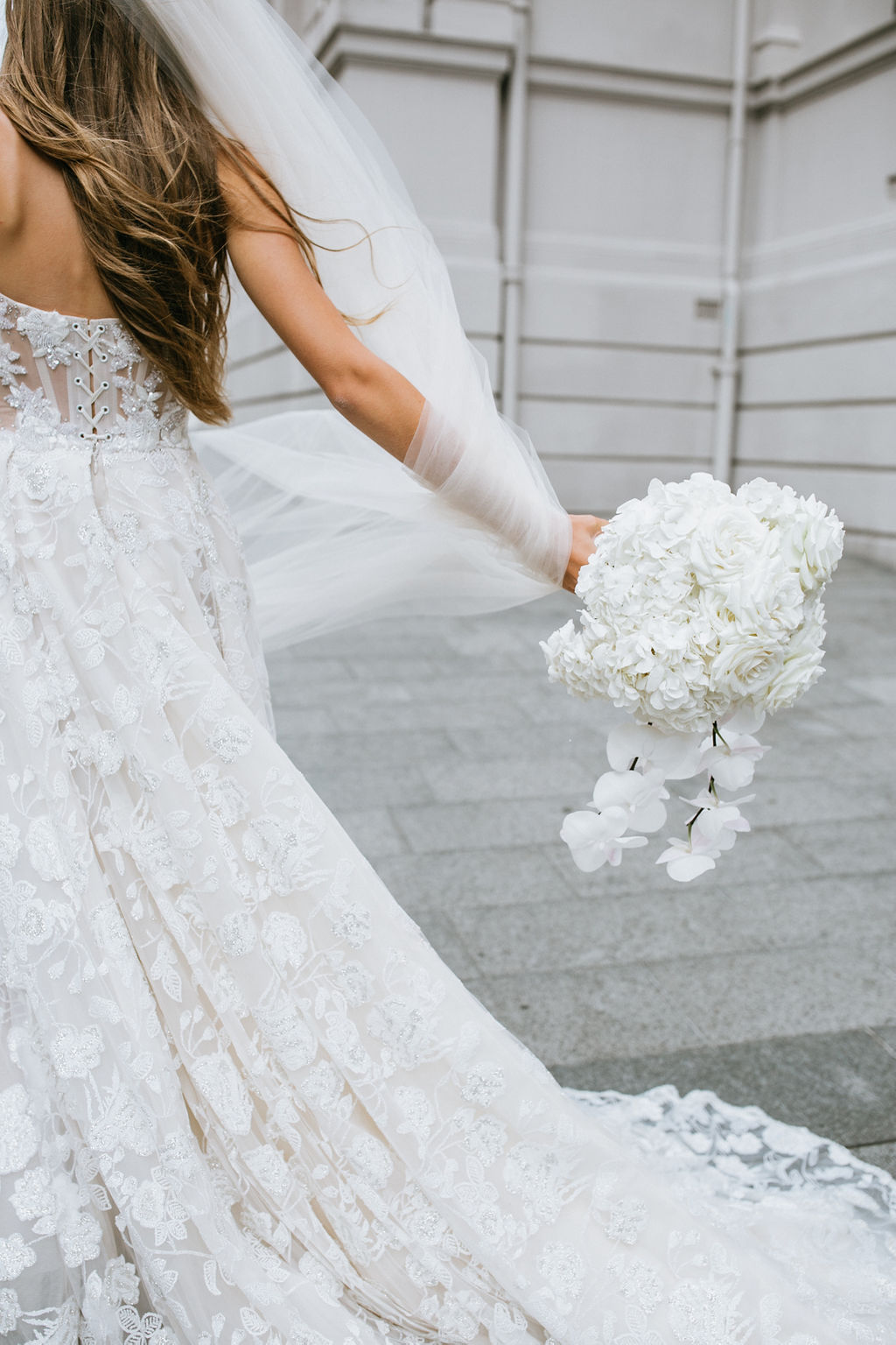 Amazing. From the moment I tried on the sample in the boutique, I knew I was meant to be a Galia Lahav bride. My dress was a work of art: the detailing throughout the bodice was exquisite, not to mention the intricate floral lace and edging that framed the dress’ soft silhouette. Being able to wear Galia Lahav on the big day was an absolutely surreal experience, I feel so incredibly lucky.