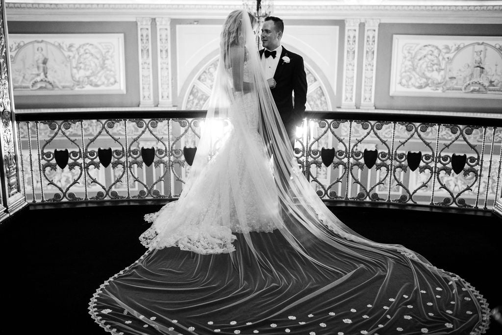Right after we were married on the stage, we went up to a box in the mezzanine. We had a few moments to ourselves before our reception began. The opera singer began to sing while our guests were still seated from the ceremony. The curtain began to rise revealing our beautiful reception where guests would then be invited up on stage. It was so magical to watch our guests’ reaction as the curtain came up and we were able to see our reception for the first time.