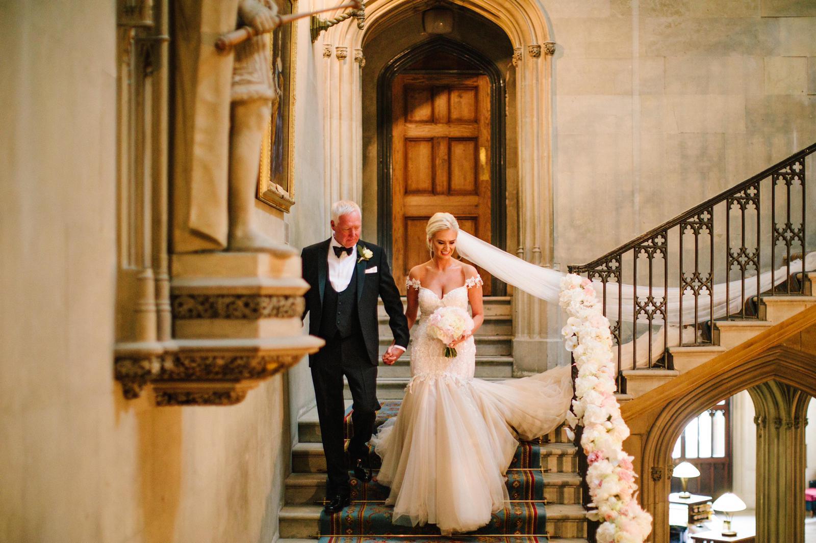 We started looking at venues in the winter. We found the beautiful Ashridge House. We both fell in love and we looked no further. It was so traditional, the ground, the whole building, just everything was breathtaking, and the stairs in the hallway, they just blew us away. I just knew I wanted to have that extra romance feel then just walking down an aisle every step I took was amazing with my father walking me down the beautiful stairs to the aisle to meet my fiancé at the end.