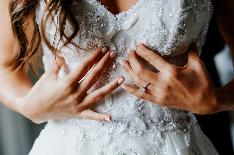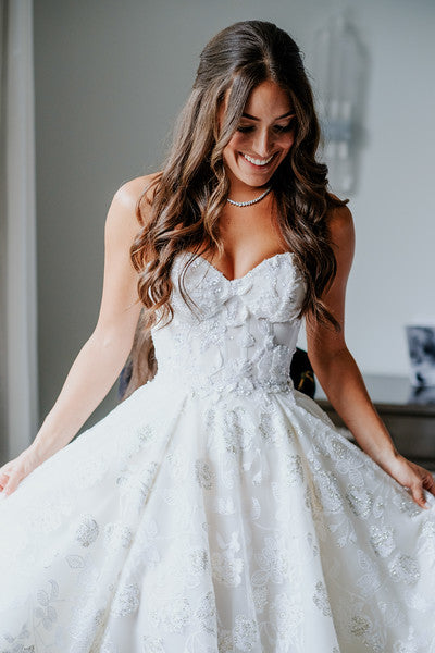 I had always loved Galia Lahav’s wedding dresses. The materials and designs are always so unique and the women who wore them always looked so beautiful, powerful, and majestic. My sister sent me a picture of a model in the Georgia gown and I immediately fell in love. She then made an appointment for me at White, a bridal store in Montreal during the Galia Lahav trunk show in the hopes that we would find this gown. At first, we didn’t see it, so I tried on a few dresses from many designers and while they were beautiful, they didn’t feel right. My sisters went searching for more gowns and found the Georgia! We were all in awe. I tried it on and immediately felt so beautiful, confident and special. I knew this was the one. It was a statement piece that felt so magical and perfect. When I came out to show them, my mom and sisters smiled and began to tear up. I then Facetimed my mother- and sister-in-law, and they smiled and started to cry too. Finally, I brought my father to see it the next day, and he got emotional too. That is when I decided the Georgia Gown would become part of my fairy tale.