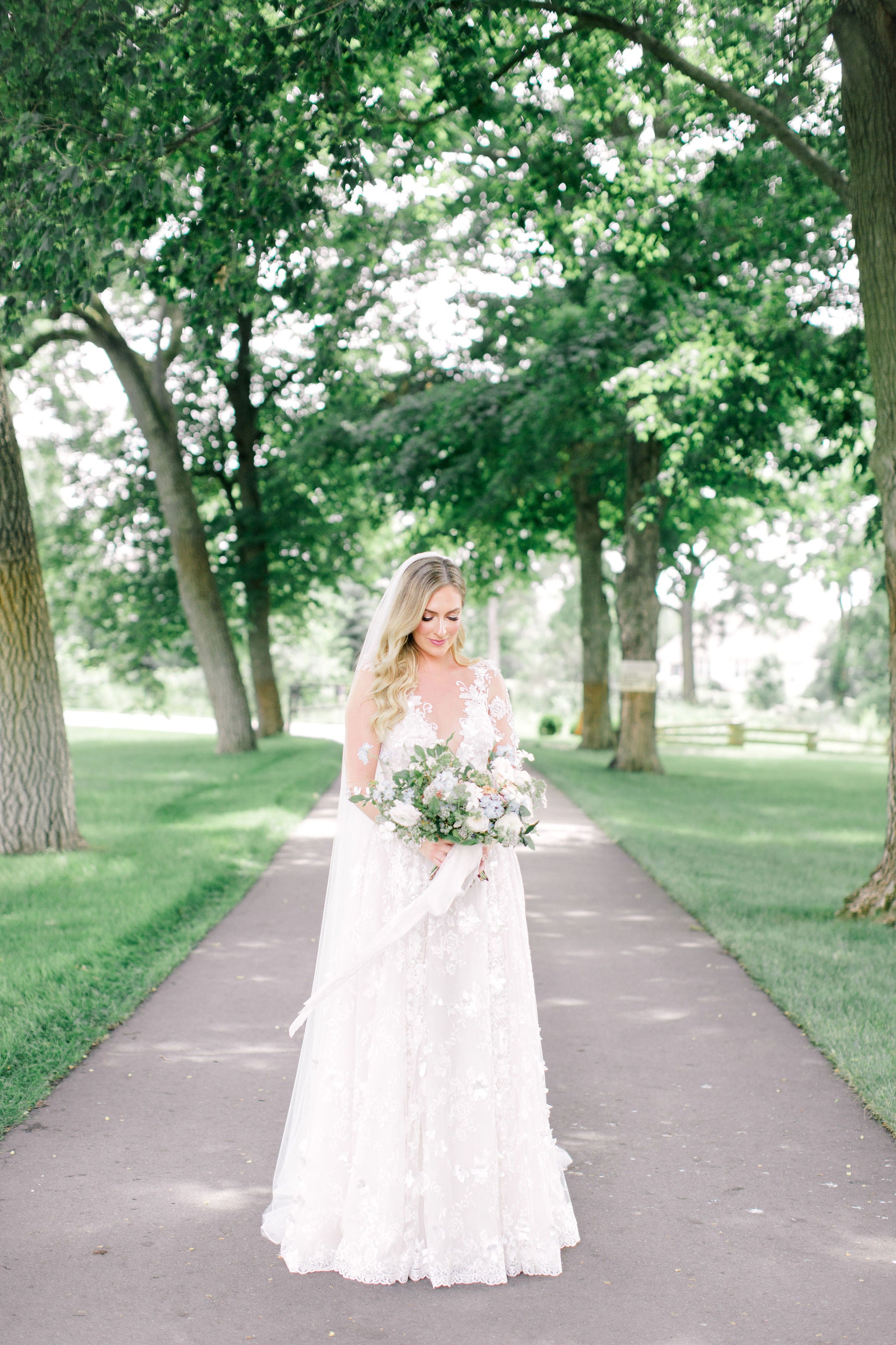 Finding my perfect dress was one of my favorite adventures in the planning process! I had known all along I wanted a Galia Lahav dress but I didn’t know how special they were until I tried my very first one on. Each one is a work of art, and I was blown away by the detail. I wanted something classic but different, and the Arabella dress was everything I had always dreamed of. It had whimsical lace detail wrapping around the arms down to the wrist, a modern plunging neckline, and the classic scalloped lace bottom skirt making it the most romantic and regal dress I tried on. I received so many compliments from my wedding guests saying they had never seen another wedding dress like it!