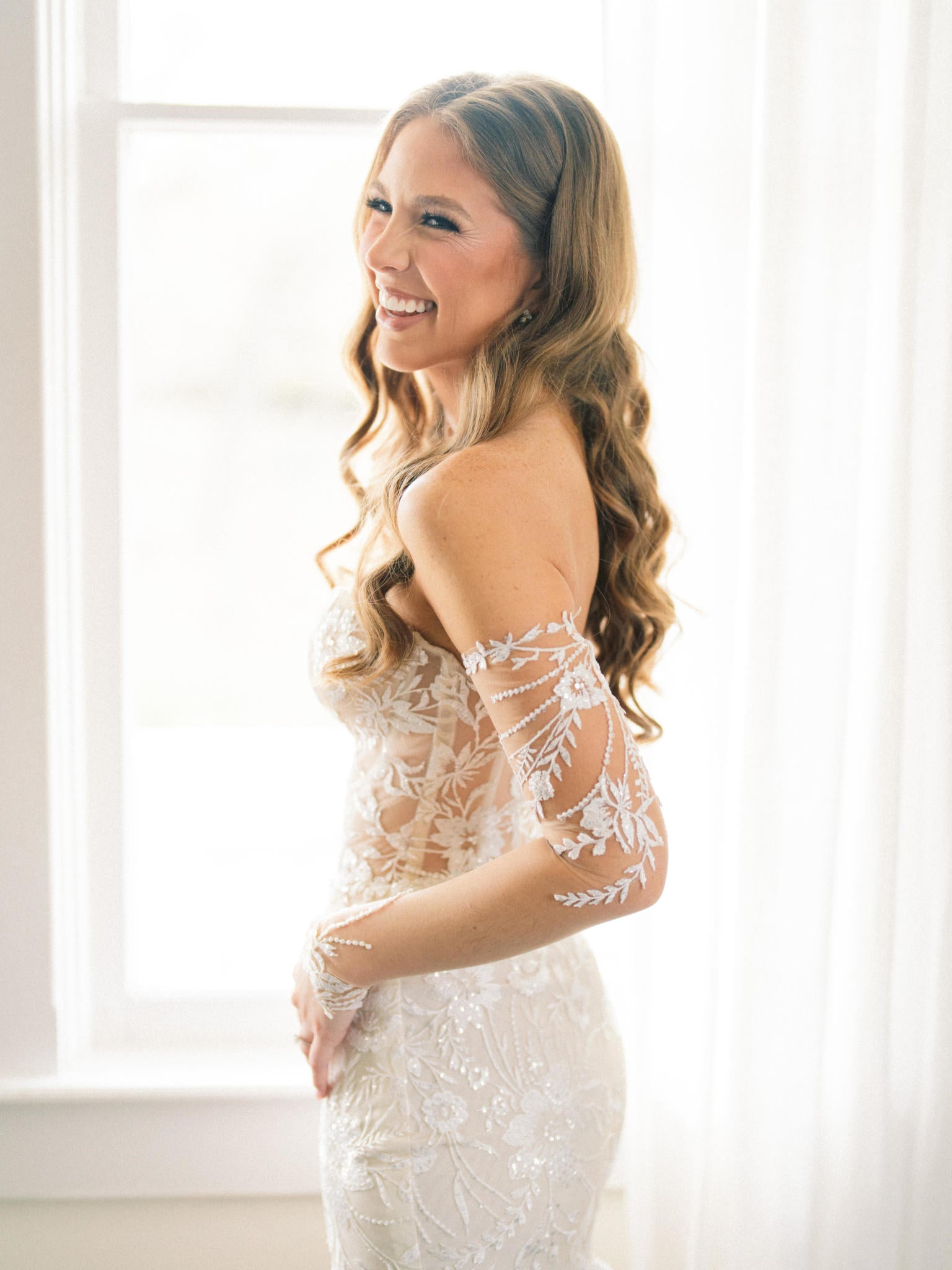 It was the only dress out of ALL of the ones I tried on where I felt like myself in it! Also, my maid of honor who rarely gets emotional, started tearing up when she saw me in it! The Galia Lahav team was so kind and accommodating! Because I loved my gown so much, I wanted to do a gown “transformation” instead of purchasing a 2nd outfit and doing an outfit change, which is very popular among brides right now, so they worked with me to make a completely custom version of the “Josi” gown! I was able to customize the sleeves to be removable, and they also worked with me to achieve a more sleek, elegant, and romantic pattern on the sleeves. Also, they attached an inner lining inside the skirt that we ripped out with a seam ripper after the ceremony! The partial see through look with the lace on the dancefloor during our first dance looked beautiful, and I ended up removing the sleeves, lassoing them around my head, and throwing them to my woman of honor in the middle of the dancefloor! It was iconic.