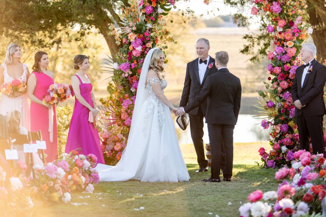 My dad married us and we ended up making the entire pathway from the top of the ranch down to the lake the aisle. I’ll never forget that moment walking down. I’m very close with my parents, and I just remember crying happy tears with my Dad as we made the journey down, and he was proud of me.
