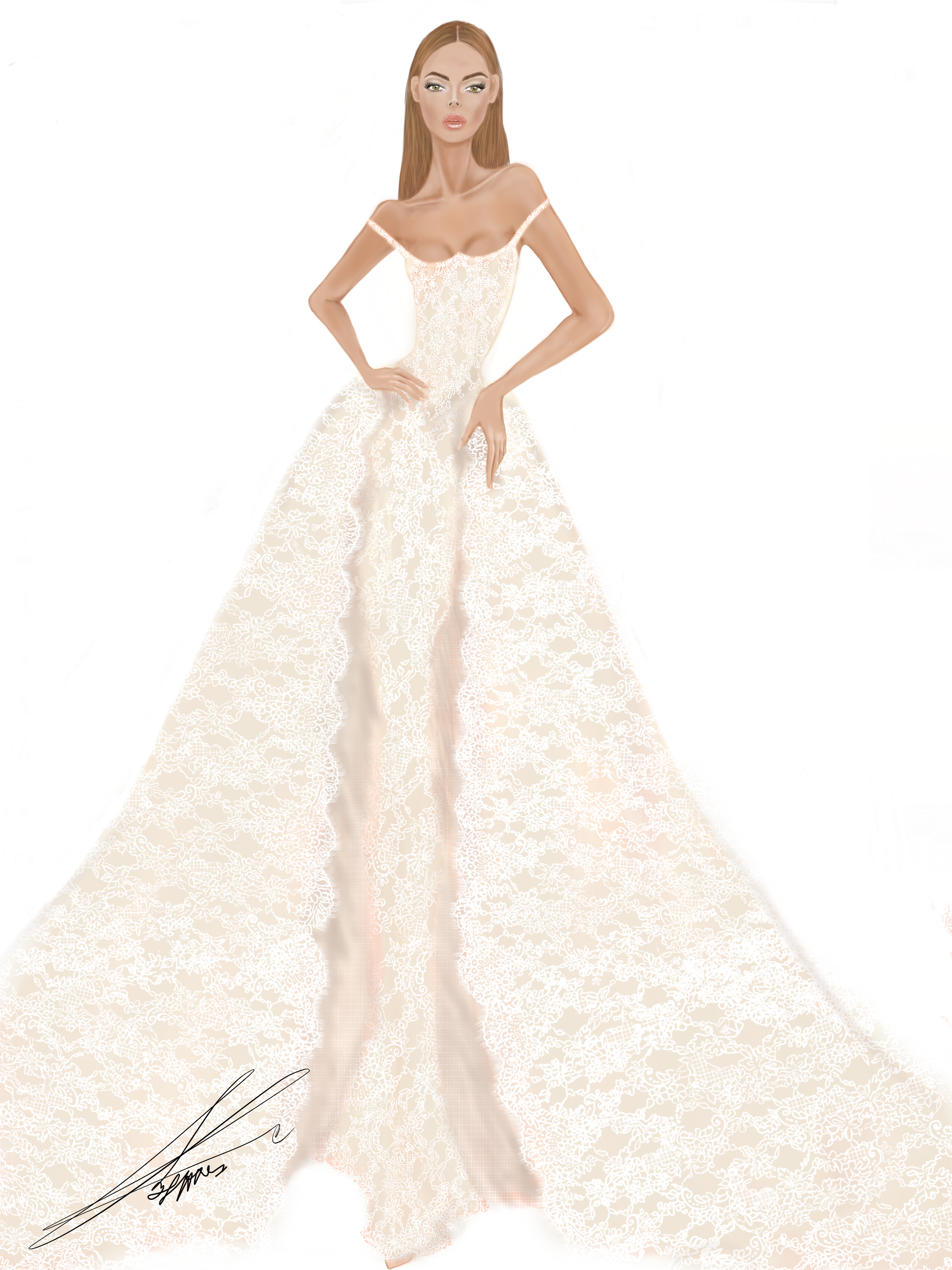 Millie’s bespoke gown varied from the Anais dress, her ivory lined gown was fitted with a corseted drop-waist bodice flowing into a form-fitting fishtail skirt. Instead of the original open back look, Millie envisioned a full lace back with silk buttons all the way down the zipper. Other customizations included keeping the look classic & removing the crystal applique at the neckline and a toned-down overskirt, as it enabled her walking down the aisle accompanied by both her parents. The look was created by Sharon Sever in collaboration with Millie & her stylist, Ryan Young.