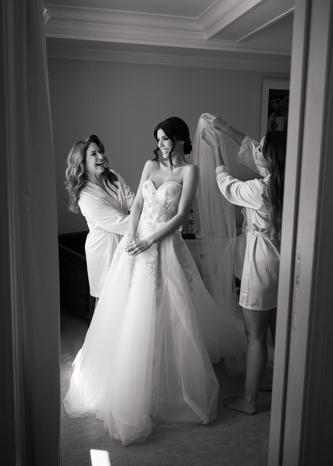 I purchased my dress at Bridal Reflections in New York City, and I had an amazing experience. The staff and seamstress were all great to work with and made sure my dress was perfect. - My sister-in-law saw it in a magazine and texted me a picture of it saying “This dress is YOU” so I ran to go try it on. As soon as I tried it on, I knew it would be my dress. I immediately felt like a bride in it. I have never seen a dress like the Giovanna dress before. I love how the shape and style of it were traditional but then the stars and the corset detailing made it feel modern, unique, and fun!