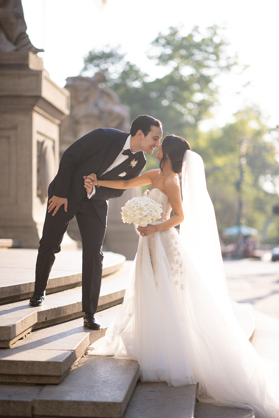We moved back to NYC after college and after 10 years of dating, he proposed at The Mark Hotel. It was my parent’s anniversary that night and my family told me we were going to celebrate at the hotel. When I got to the hotel room, there were rose petals, flowers, and candles everywhere! He proposed in the room and soon after both of our families joined us to celebrate.