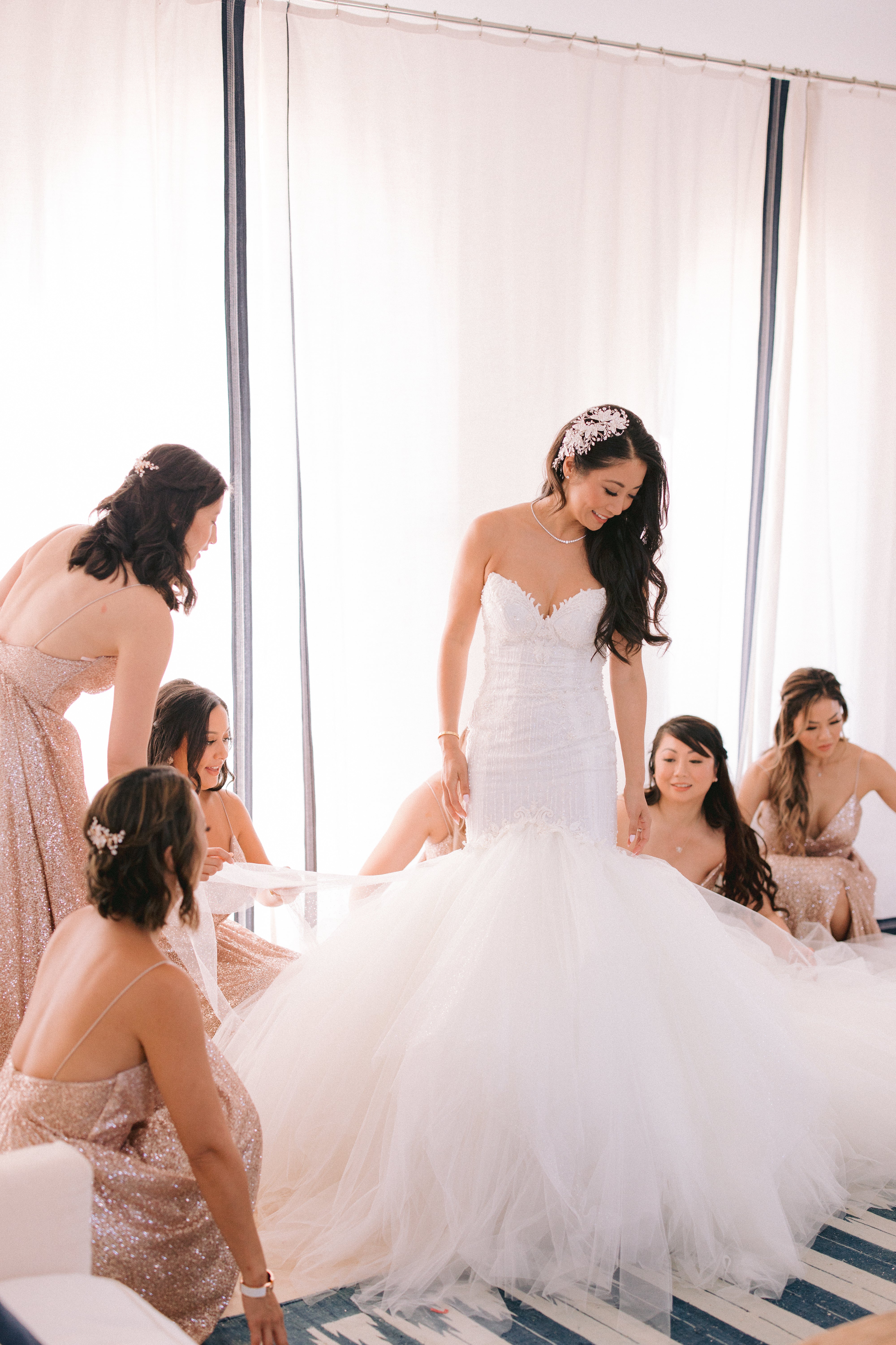 I knew if I ever got married, I wanted to be married in a Galia Lahav dress. I first went to the Kinsley James Store in Walnut Creek, CA for the Galia Lahav Trunk Show. Since they were only featuring the latest designs, I tried on a few GL dresses and was in love with the Ms. Elle dress. I asked if I can custom make a dress and pretty much took parts of three different dresses and added them together. I also added a 10 ft Train to extend the existing train. Galia approved the design and I was in love when I had my first fitting.