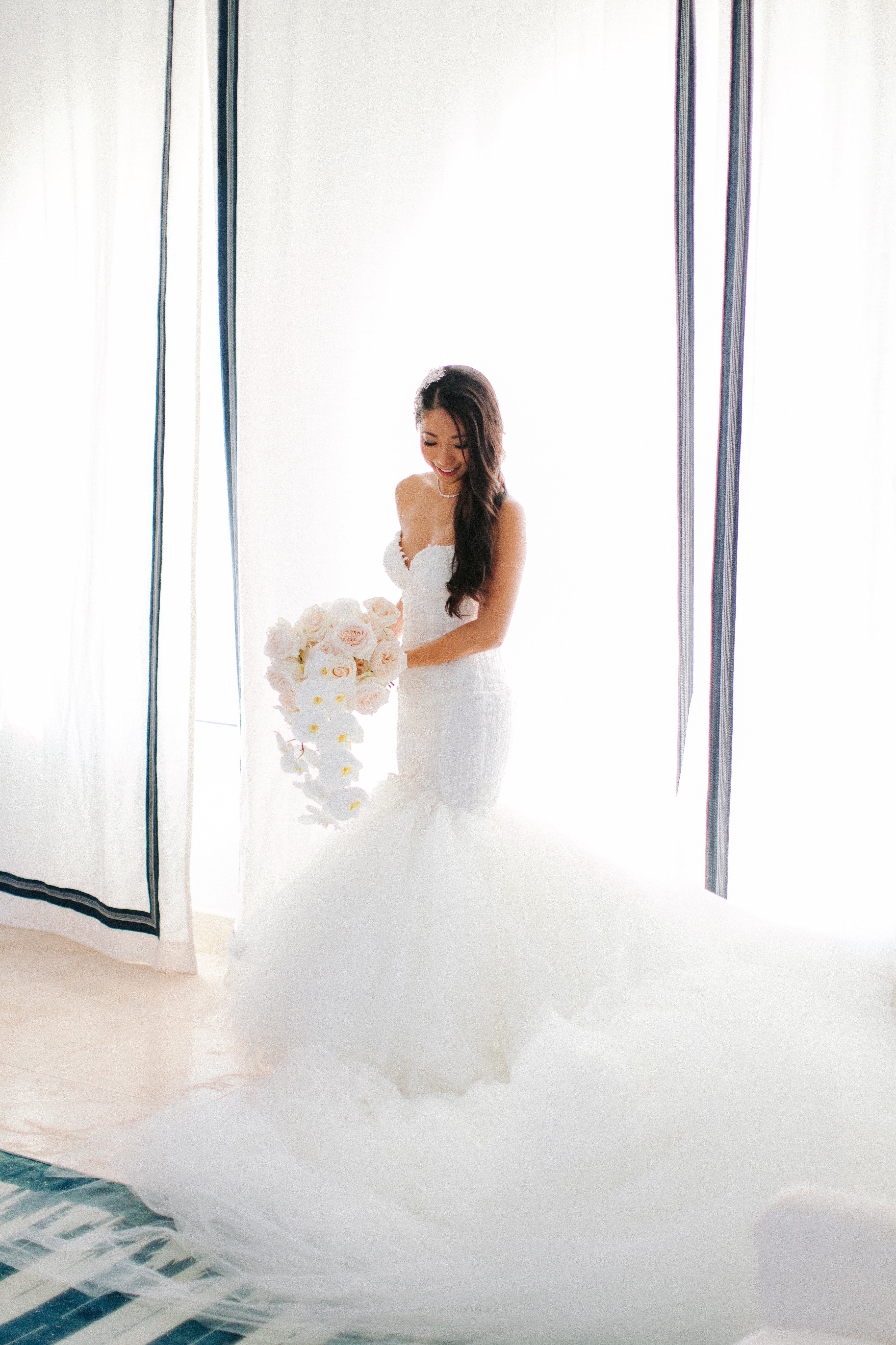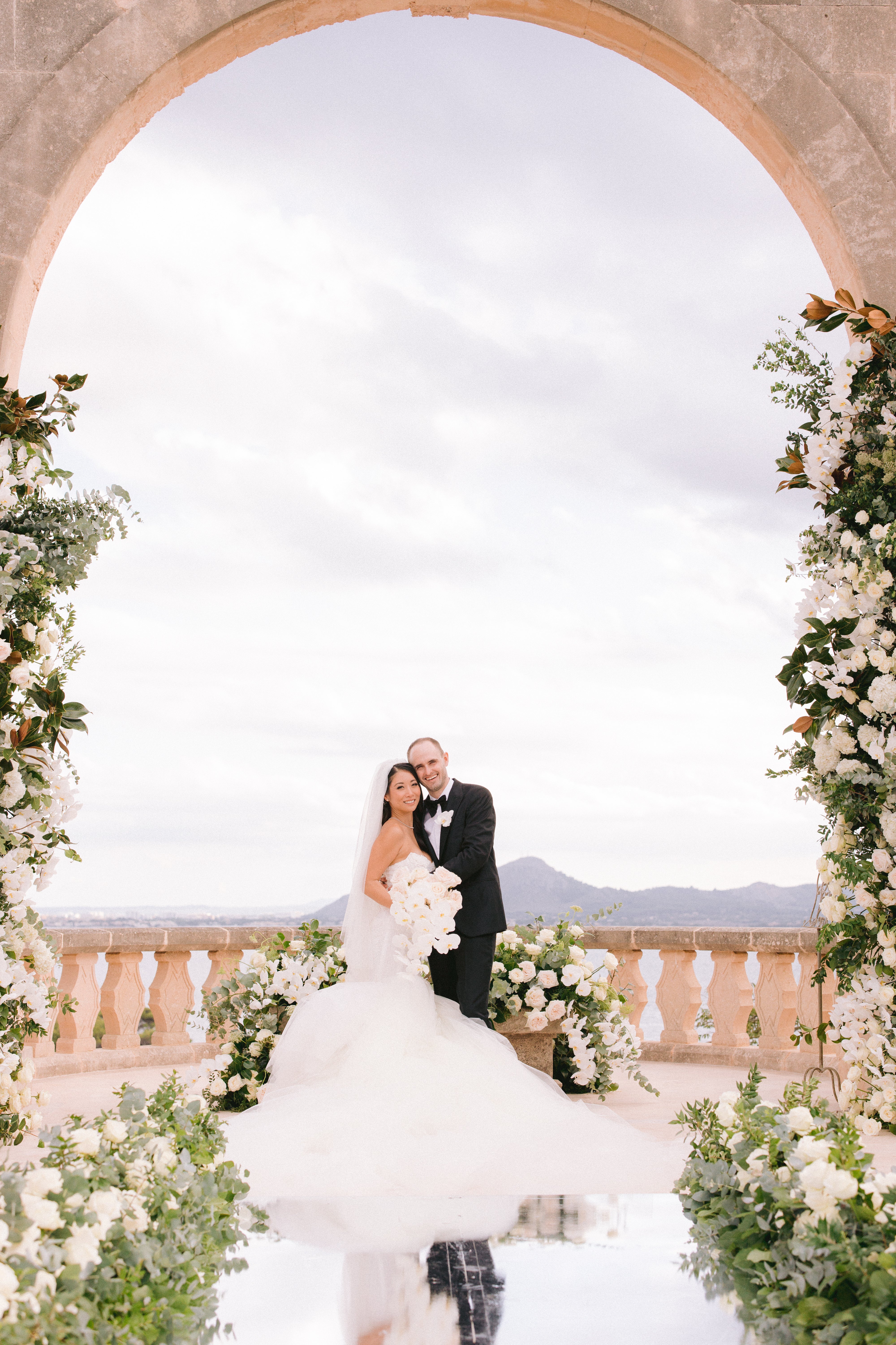 Surrounded by breathtaking views of the Mediterranean, the couple tied-the-knot at the stunning La Fortaleza Mallorca in Spain. In the following interview, Ying Fu shares with us her romantic love story and the moment she fell for our Ms.Elle gown. As told by Ying Fu: