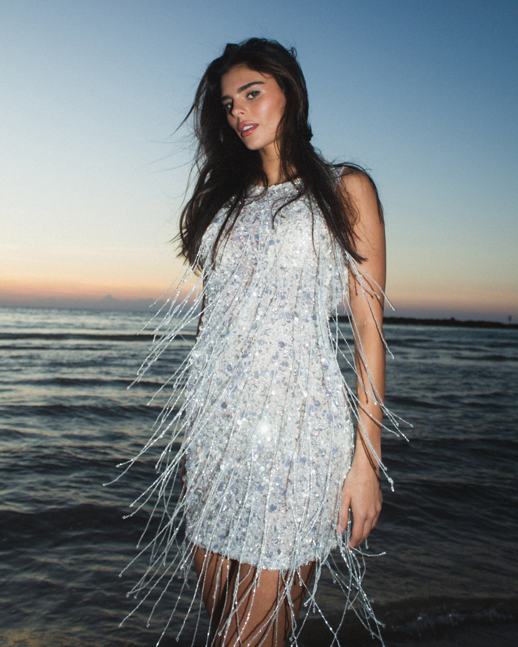 Party-meets-sophistication with a strapless, corseted midi-dress sparkling with sequins and holographic fringed paillettes. https://www.galialahav.com/products/alana