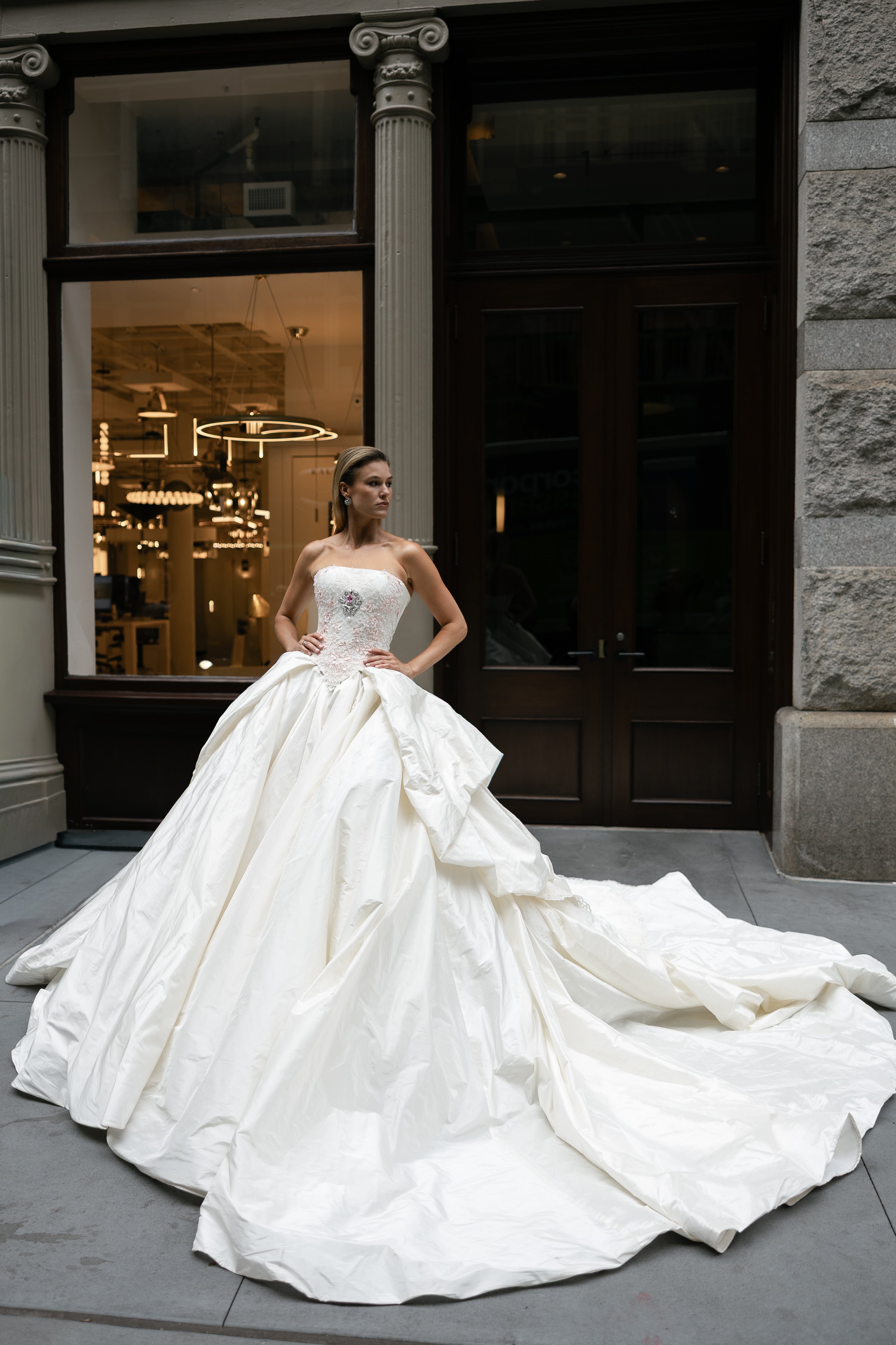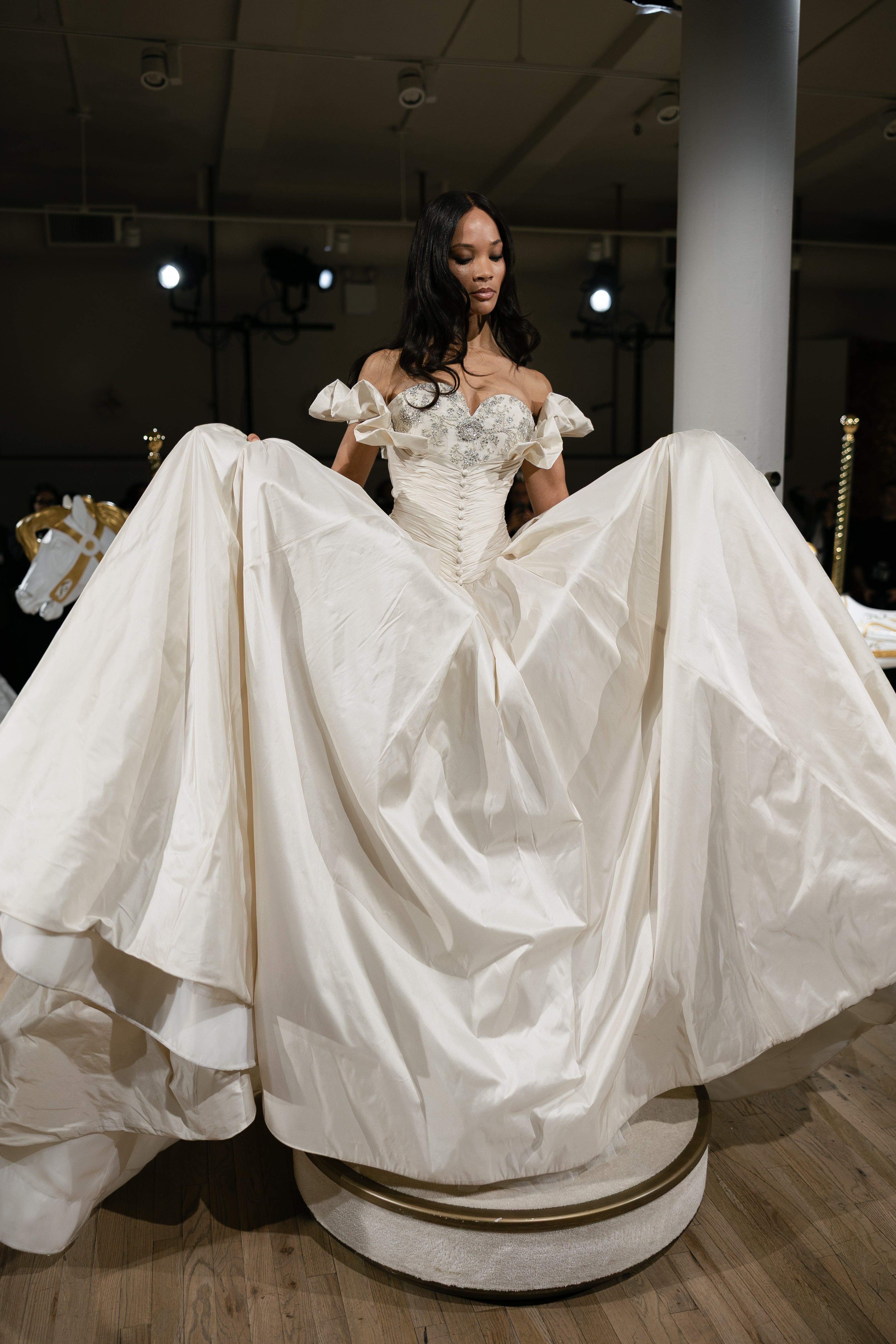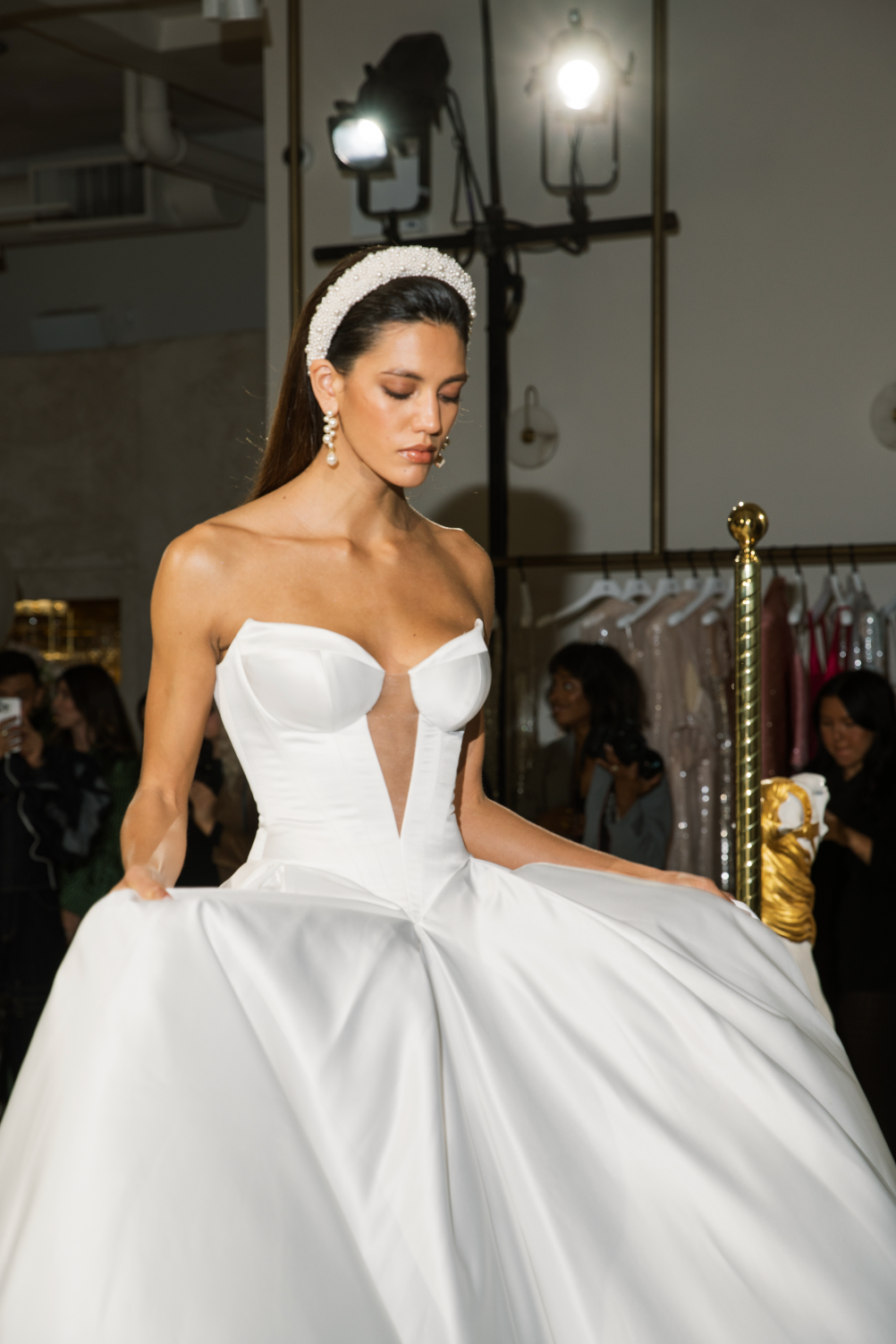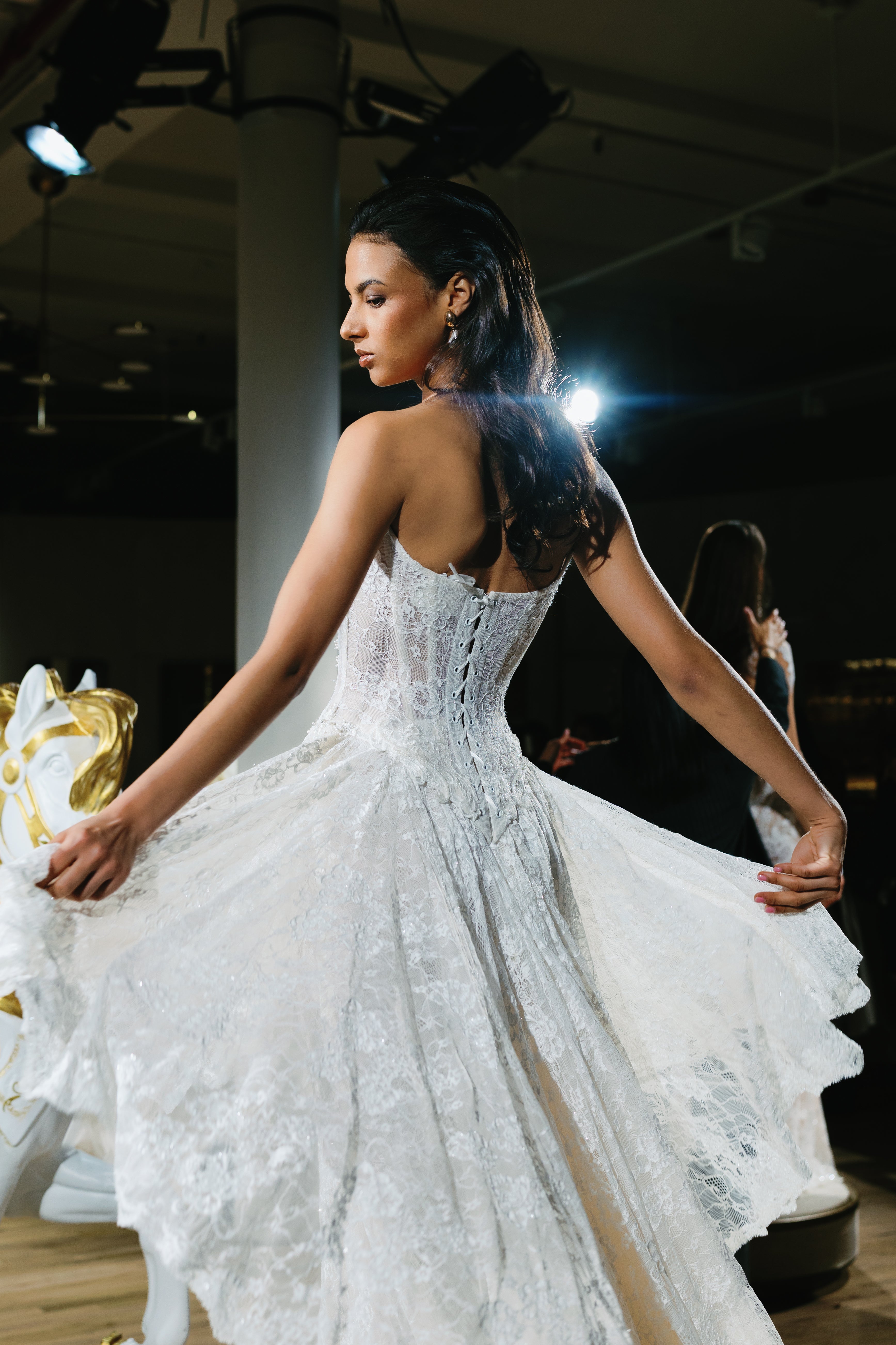 Following the cinematic reveal, the Keepsake Collection took center stage - a tribute to the romance and grandeur of the Gilded Age, reimagined for today’s bride. Exquisite corsetry, luxurious silks, and delicate lacework telling stories of timeless beauty, while modern cuts and detachable details reflected the individuality of the modern woman.