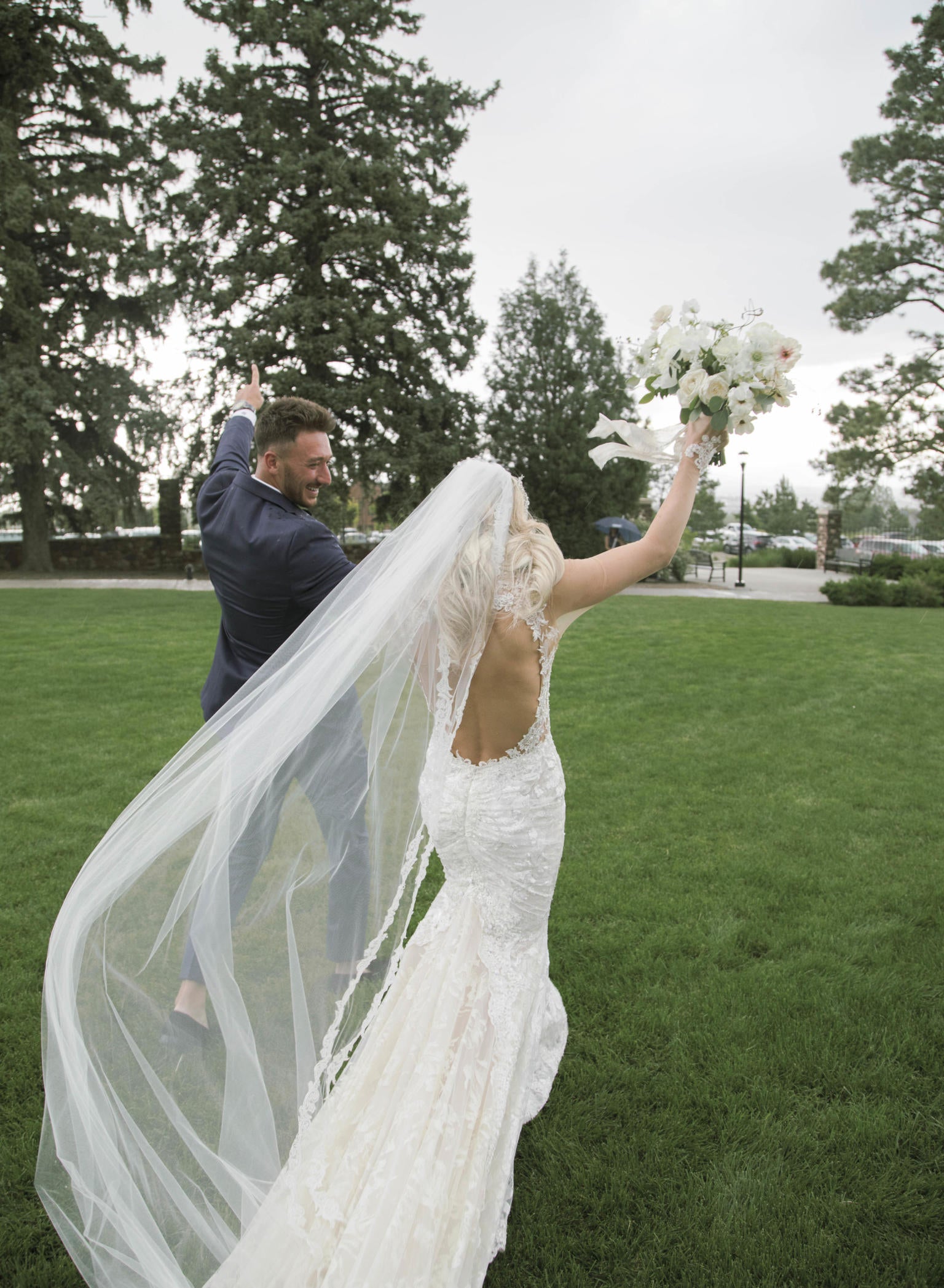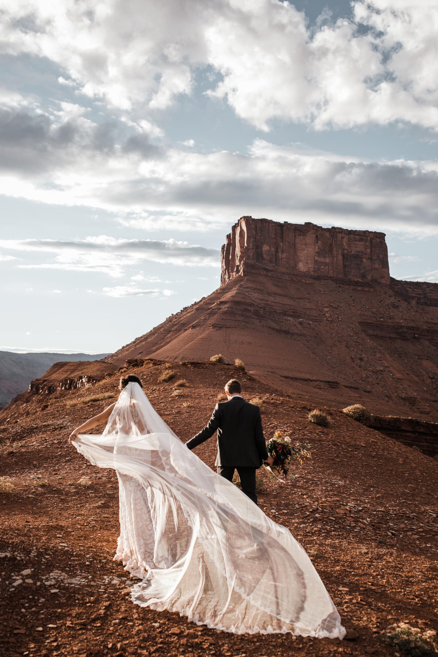 We recommend choosing one element of the dress to bring into a matching veil. For example, if the dress has a floral lace pattern and some sparkle, you can choose to either highlight the floral lace or the sparkle with a matching veil that has one of those elements. Whenever the dress comes with a matching veil, we always recommend going with that as the veil was literally made to pair perfectly with that dress!