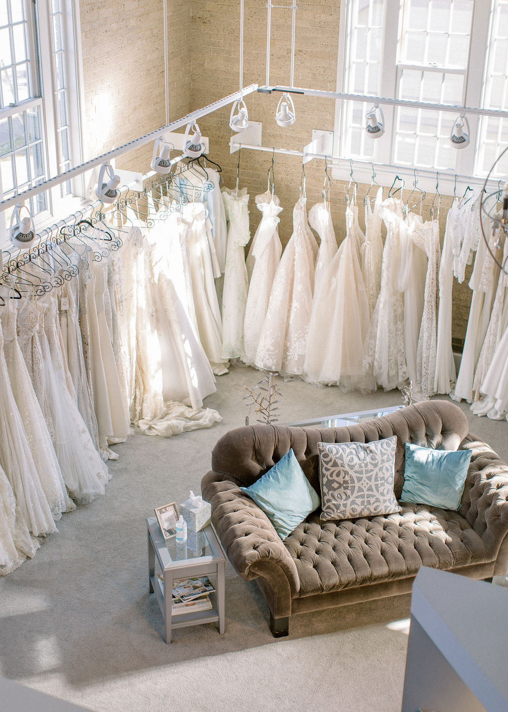 Our location, selection and service truly make for a one of a kind experience. We are located in an historic building with huge ceilings and windows, which makes for incredible light and an amazing oasis in central Denver. We have curated the best selection of designers for our brides, including Galia Lahav, and our combo of incredible designers isn’t available anywhere else. Our stylists are also just so knowledgeable and friendly, and brides just rave about their fun and amazing experience with us!