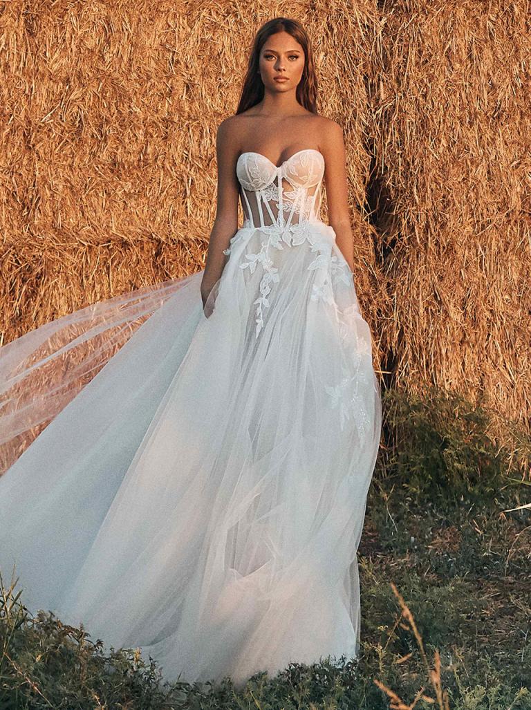 Nodding to an urban oasis for inspiration, each of these GALA gowns offers something memorable. For the bride looking for a modern dress with Old-World influences, there’s corsetry and swaths of delicate lace.
