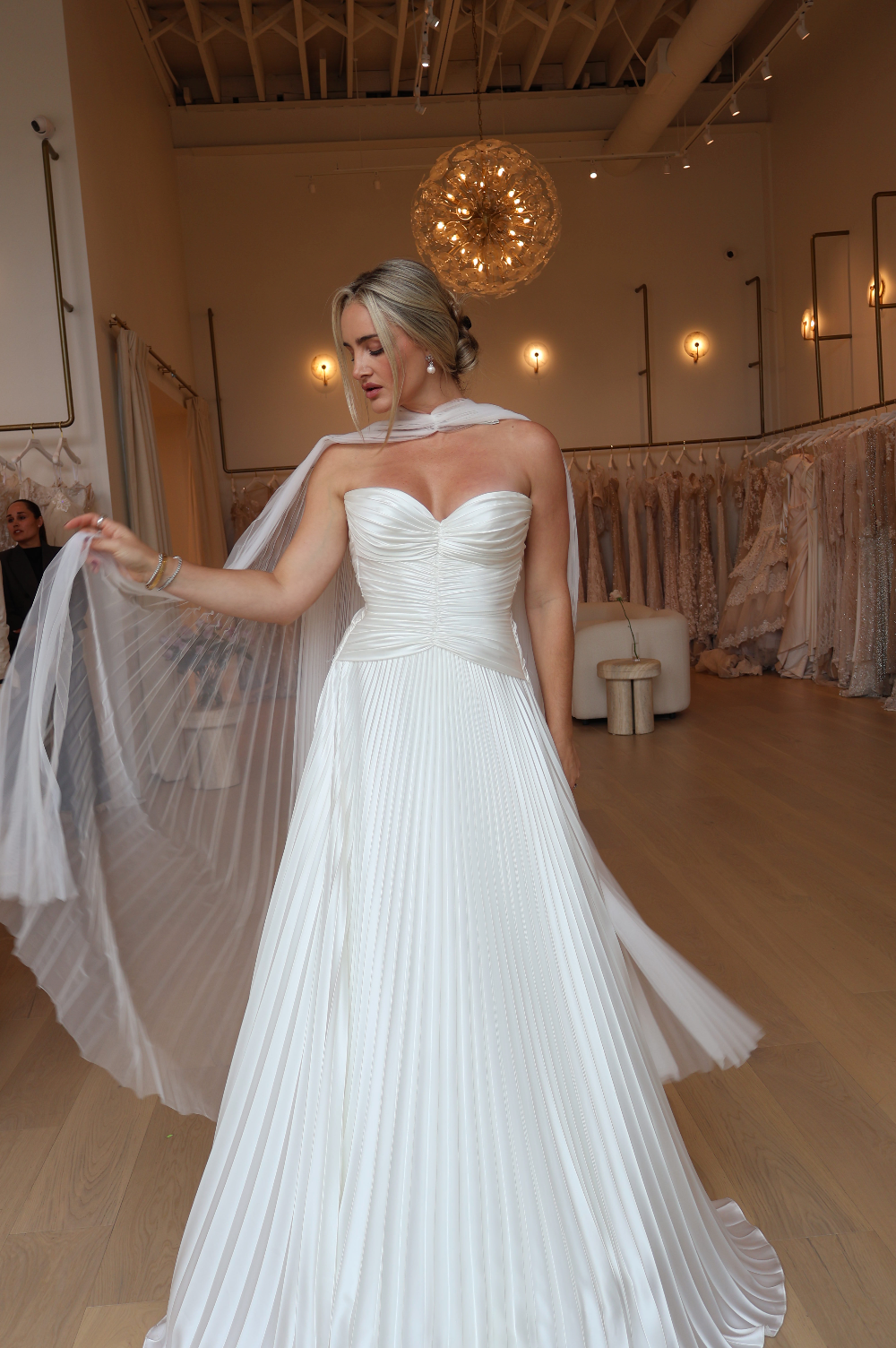 This season’s creator event unfolded inside our newly renovated LA flagship — the perfect setting to debut Keepsake and Charmed, two collections shaped by memory, nostalgia, and the quiet magic woven into every gown. Silks glowed under soft lighting, corsets sculpted like modern armor, and delicate beadwork shimmered like tiny charms. The space felt intimate, ethereal — a place where every girl could step into a dress and feel a moment she’d want to keep forever.