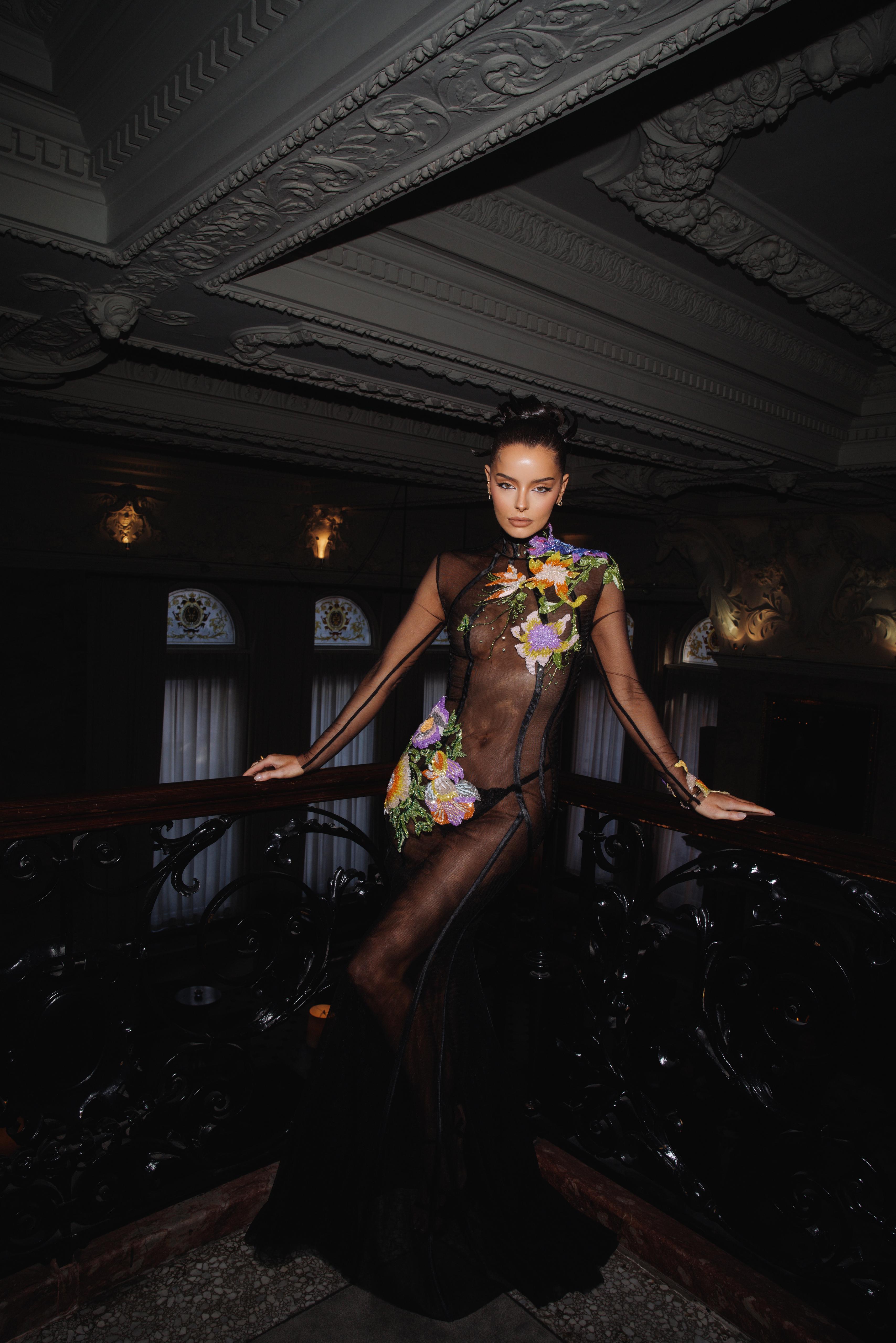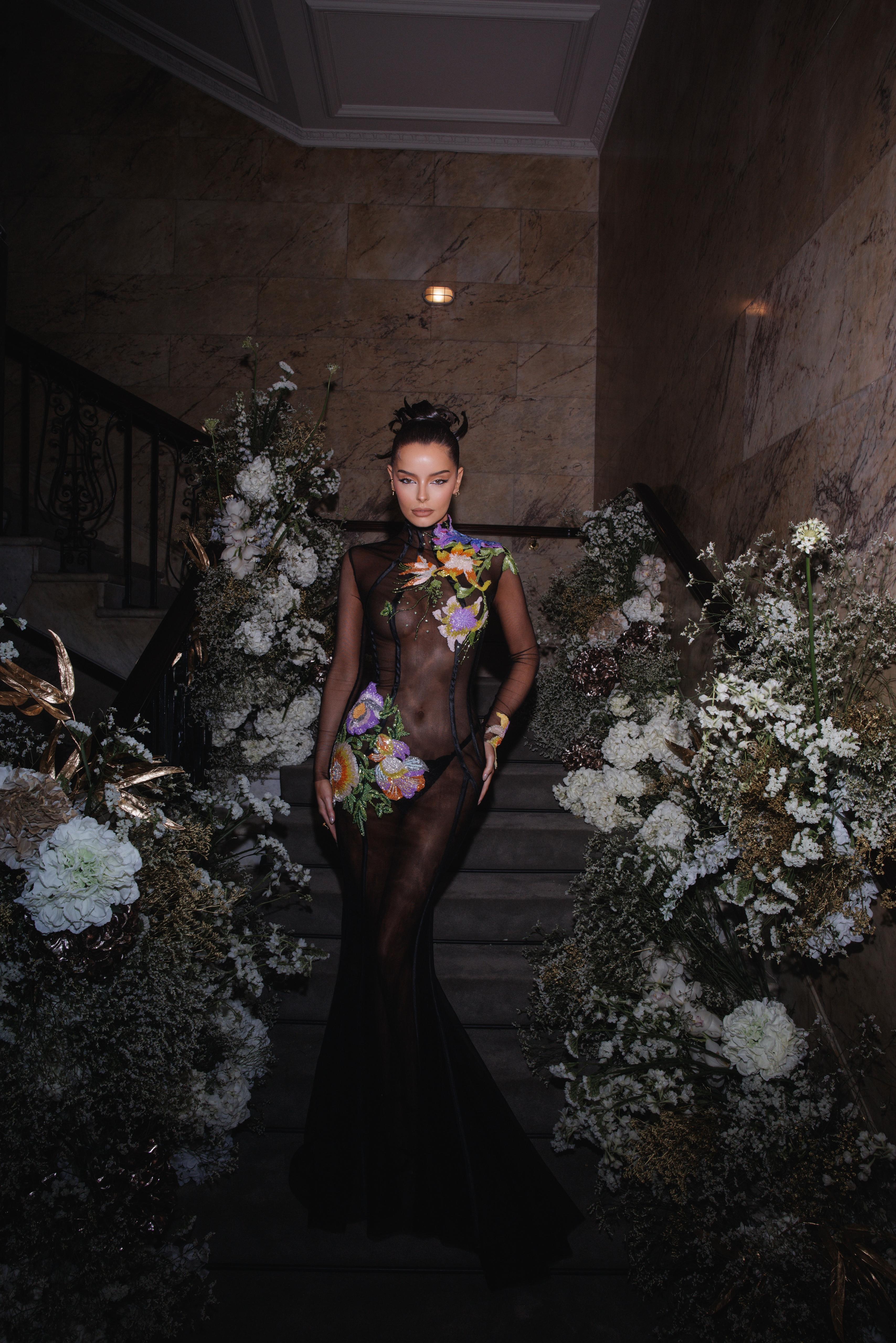 A gown like Iris is more than just fabric—it’s a statement. Designed for the woman who owns the moment, the gown features strategically placed floral embroidery that gives the illusion of being painted onto the skin. The balance of sheer fabric and intricate detailing creates a look that is both sensual and refined, making it the ultimate choice for a modern red carpet muse.