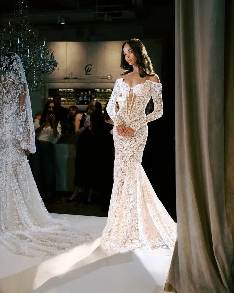 If there is one gown style that remains as popular today for weddings as it did when it launched in 1947, it’s the cinched waistline of Christian Dior’s “New Look.” This structured, feminine silhouette featured a tailored bodice with an accentuated waistline and full skirt.
