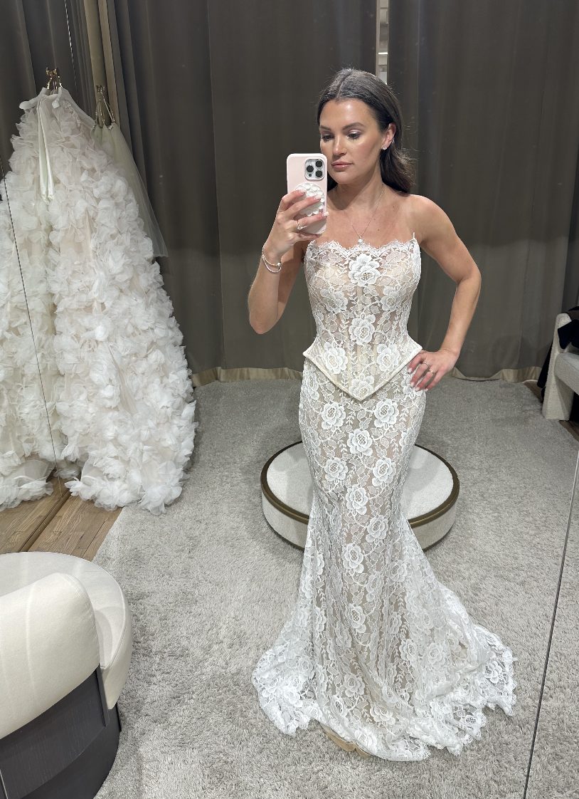 Dropped waistlines are one of the hottest trends in bridal this year and corseted bodices are