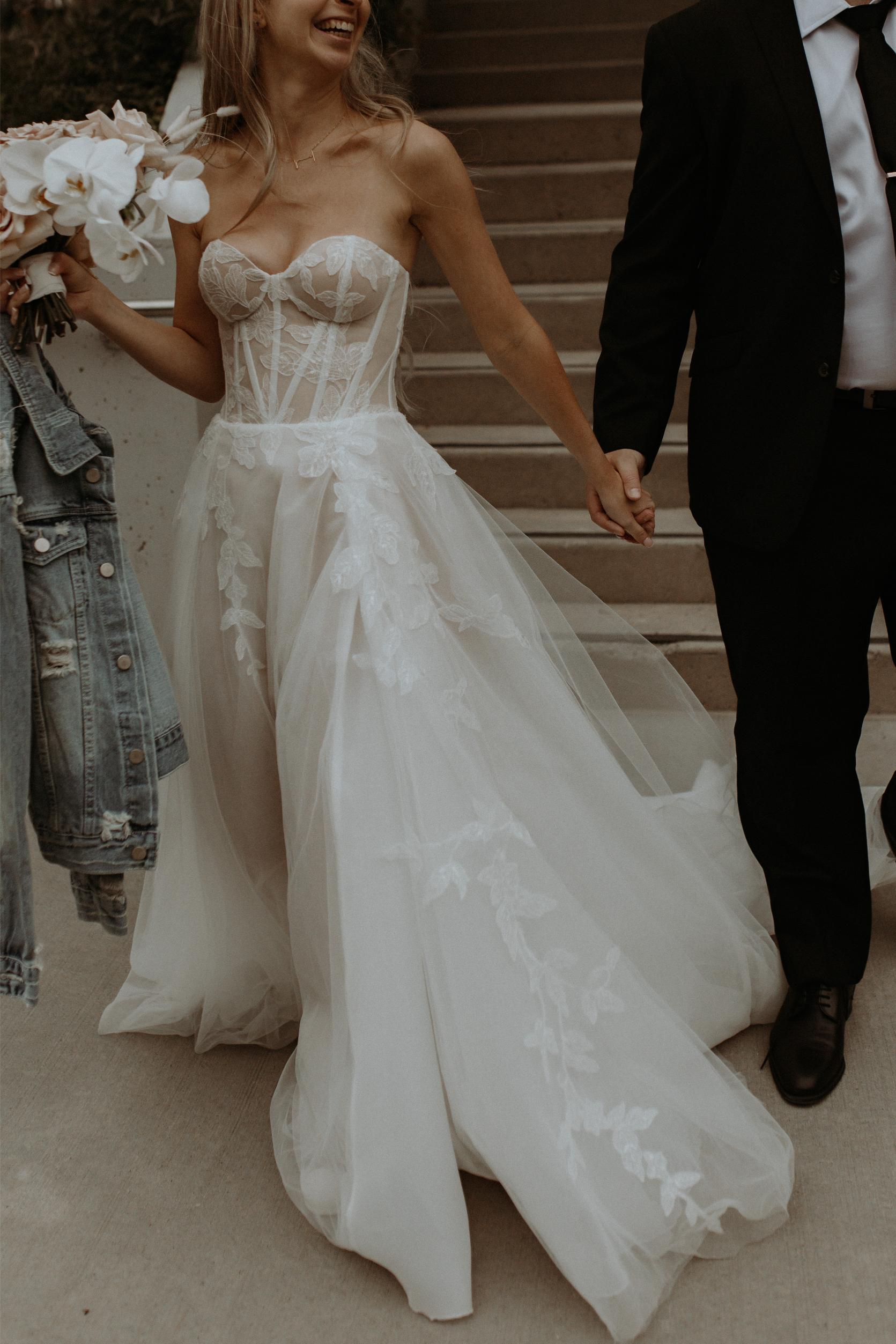 Working with both White Toronto and Galia Lahav was a dream. They were so professional and accommodating and to everything I had envisioned in the dress. We had added some personal touches to it, like the thigh-high slit and the lining. We also added some additional flower applique to the dress and the veil. This wedding was also planned for about three months and team Galia was wonderful at making sure my dress came in time. I am very grateful to them. - I knew my dress was the one when I looked at myself in the mirror and said, “Oh my gosh, I look like a bride!”