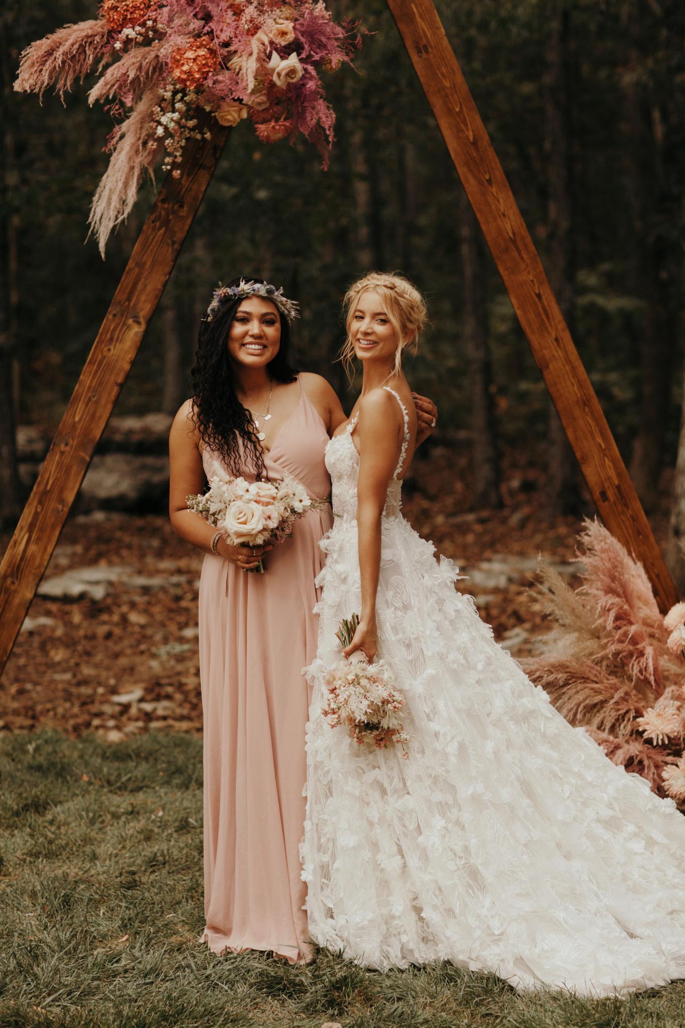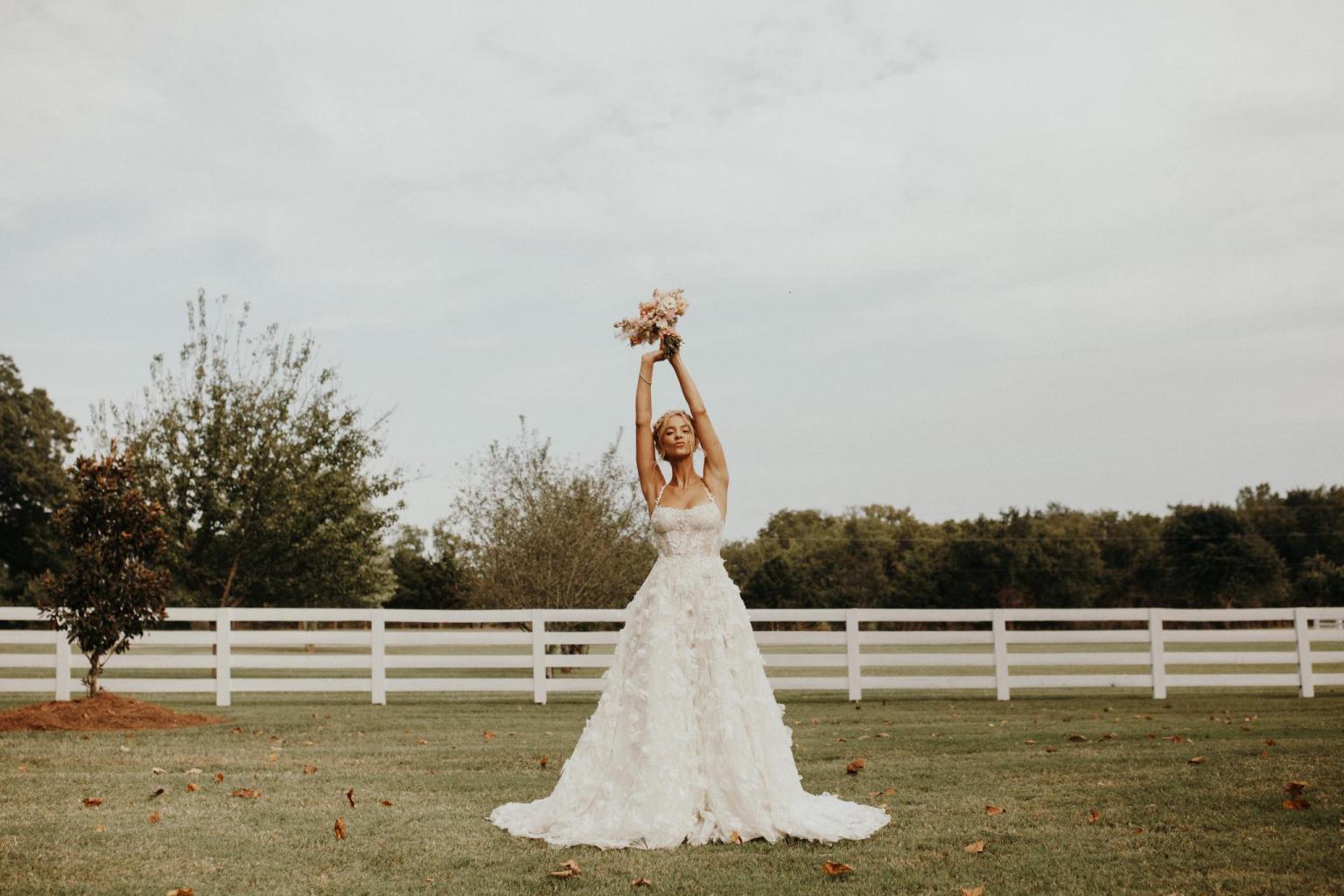 Our #GLBride of the week is the lovely Sabina Gadecki, who tied-the-knot with her fiancé Tyler in our Fabiana gown. Complete with pampas grass, teepees, and vintage rugs, the couple held their hippy inspired wedding with a boho flair at the Saddle Woods in Tennessee. In the following interview, Sabina shares with us the moments she will cherish forever and the story of how she found her dream dress with us. As told by Sabina: